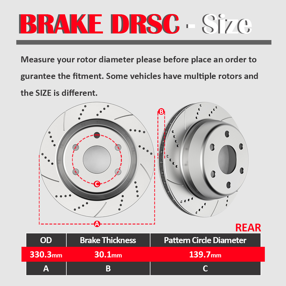 (Please Check Compatibility Chart Below If the Rear Rotor Measurement on Your Vehicles is unknown)