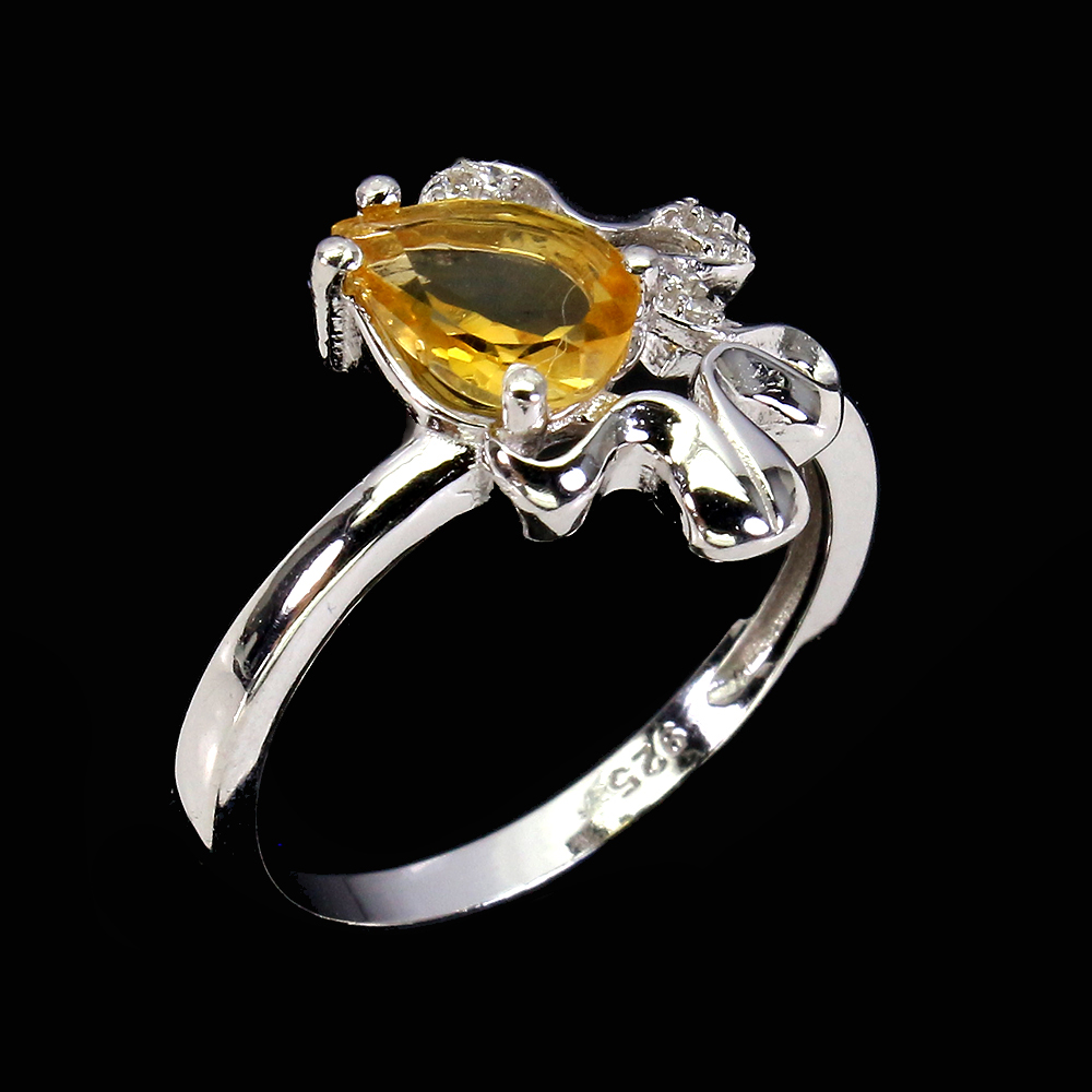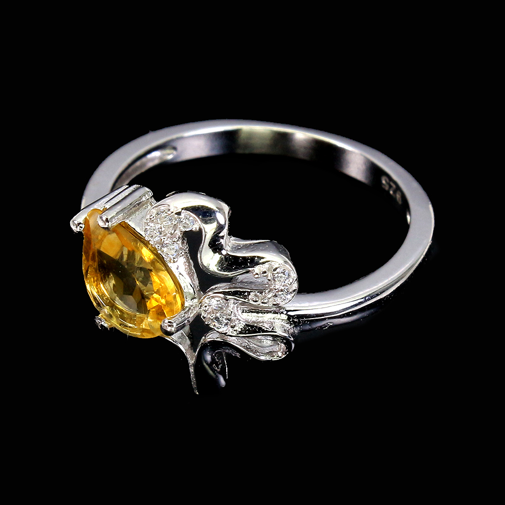 Unheated Pear Citrine 8x6mm Simulated Cz White Gold Plate 925 Sterling Silver Ring