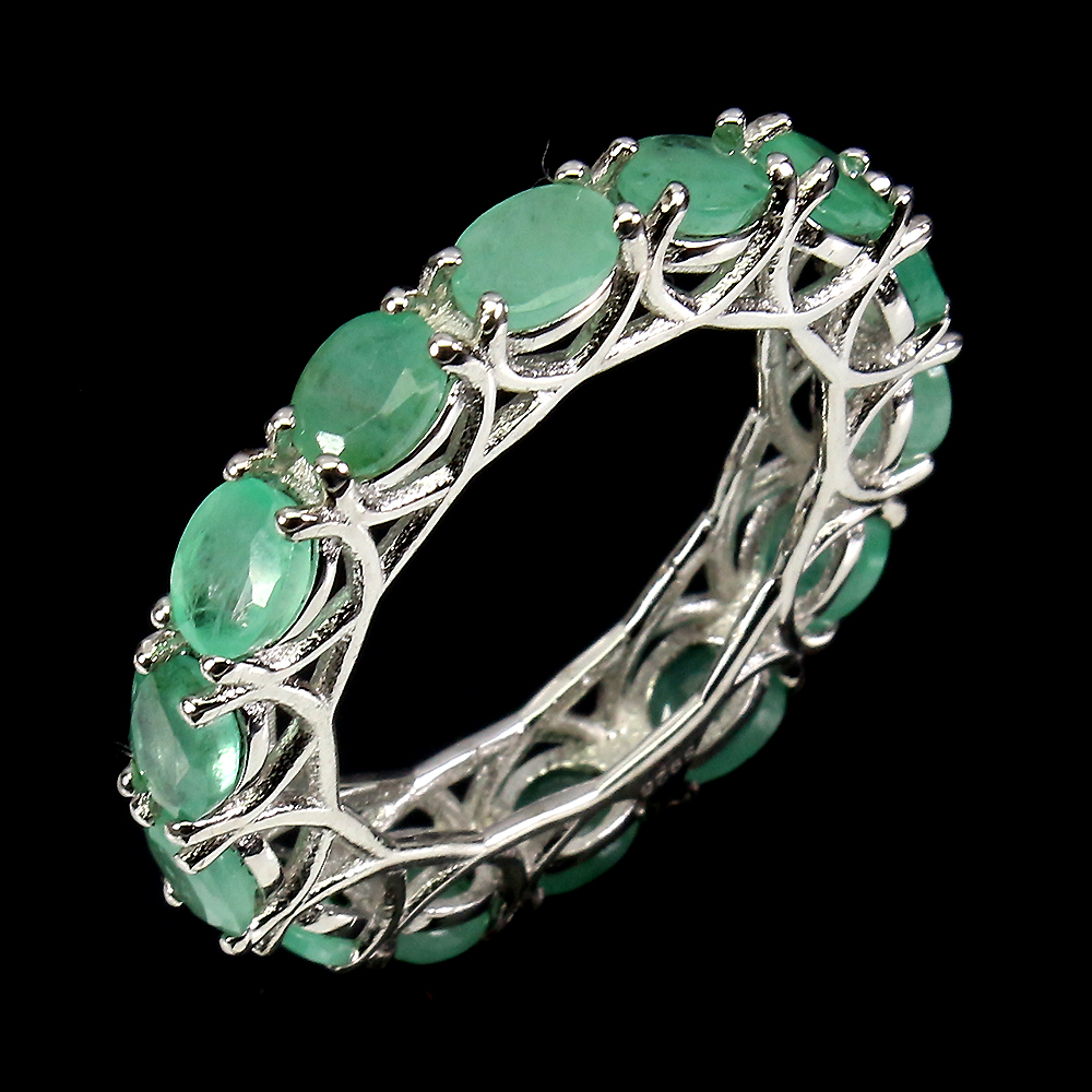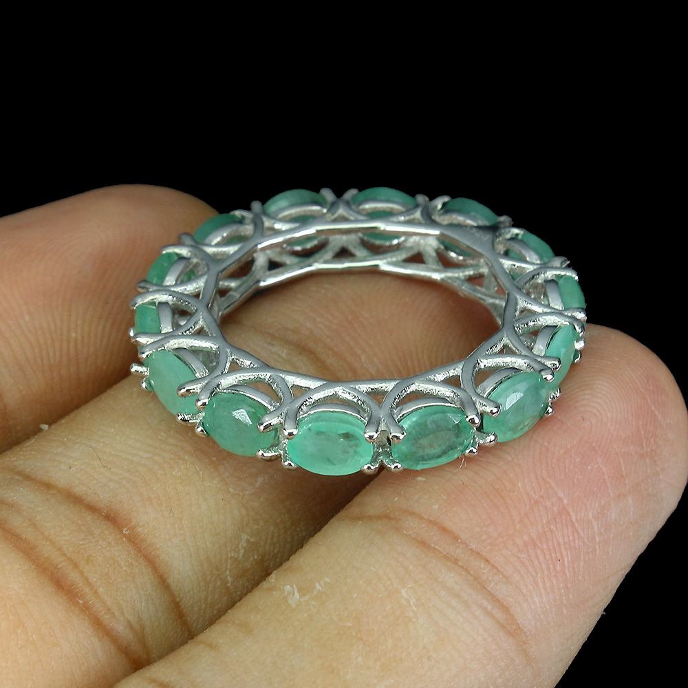 Unheated Oval Green Emerald 5x4mm 14K White Gold Plate 925 Sterling Silver Ring