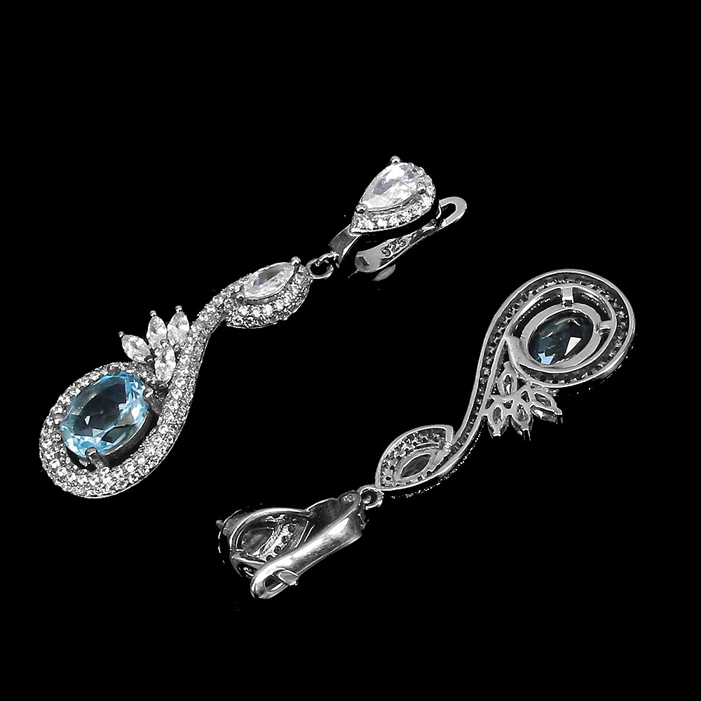 Oval Sky Blue Topaz 9x7mm Cz 14K White Gold Plate 925 Sterling Silver Earrings