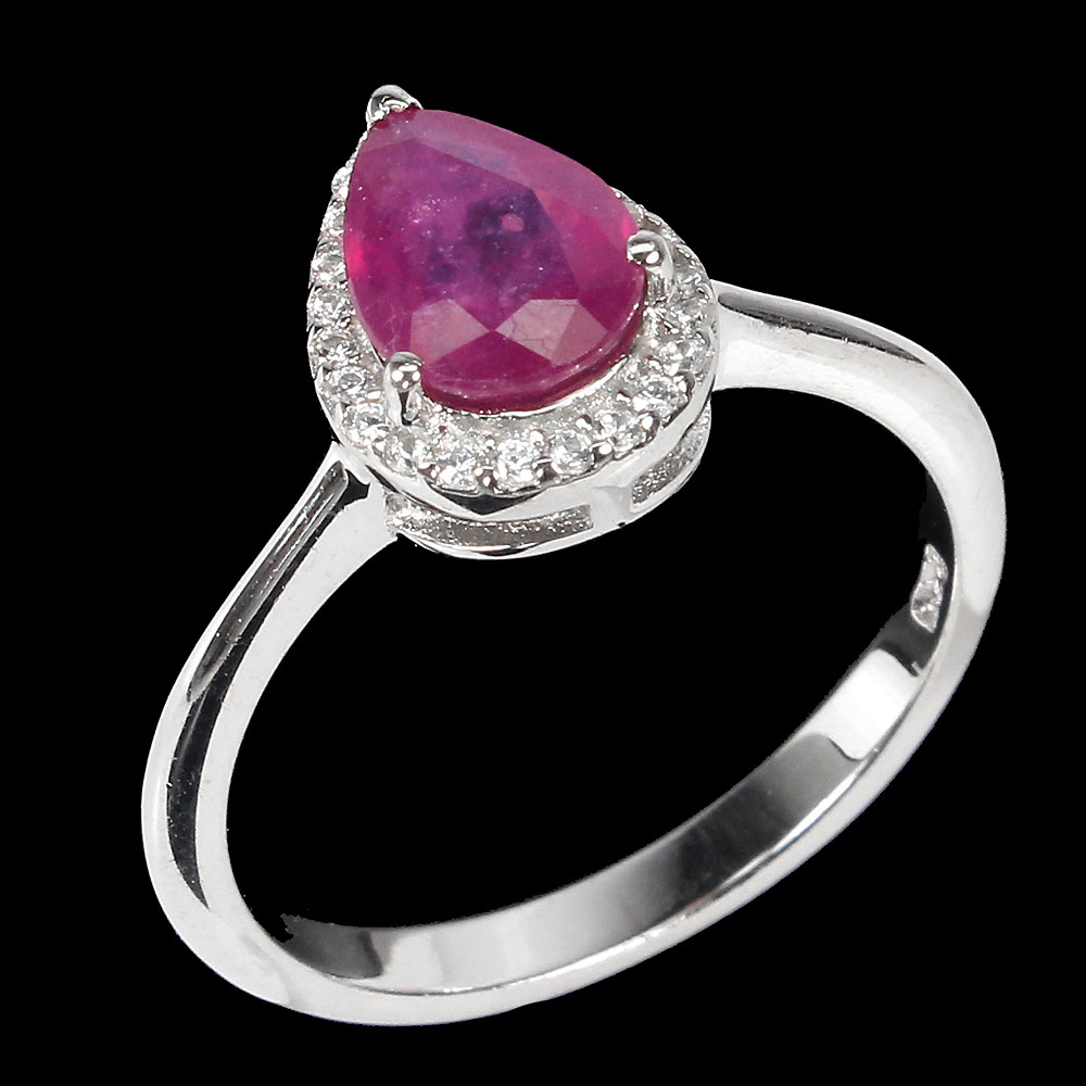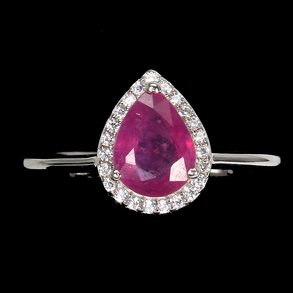 Heated Pear Ruby 8x6mm Simulated Cz White Gold Plate 925 Sterling Silver Ring