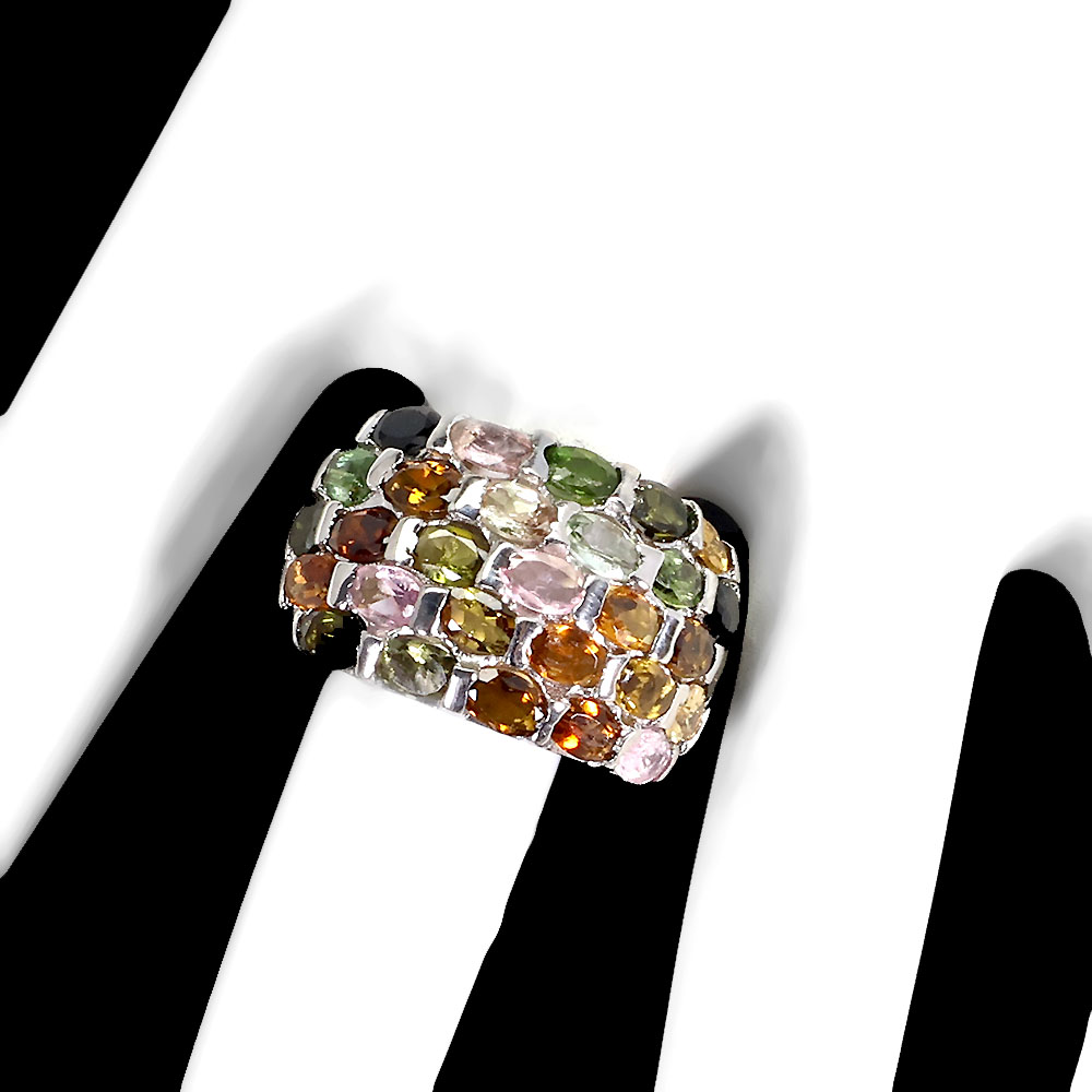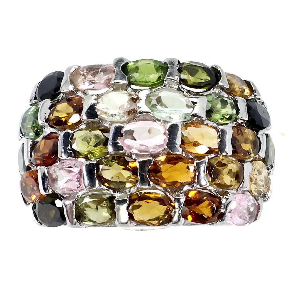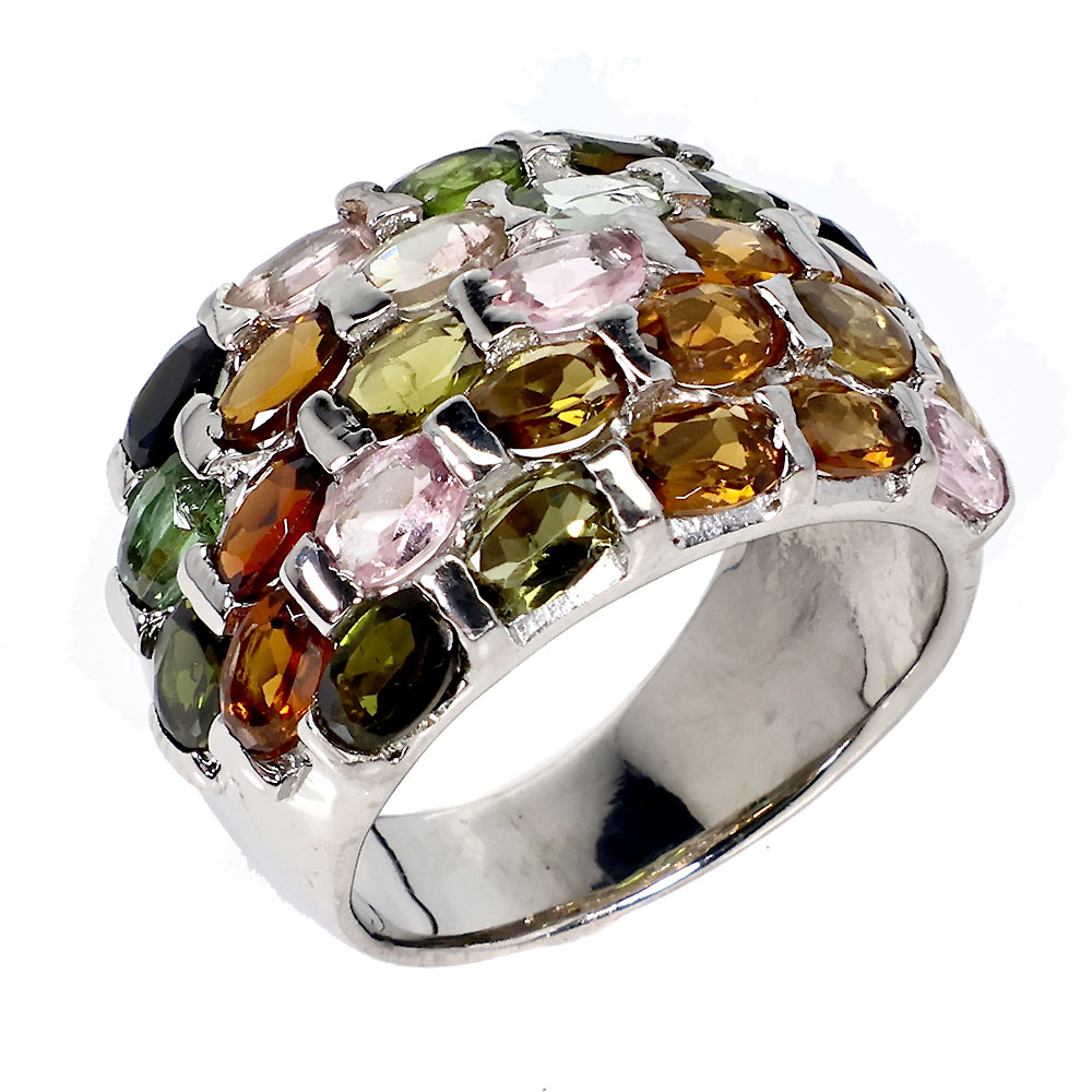Unheated Oval Tourmaline 5x3mm 14K White Gold Plate 925 Sterling Silver Ring 8.5