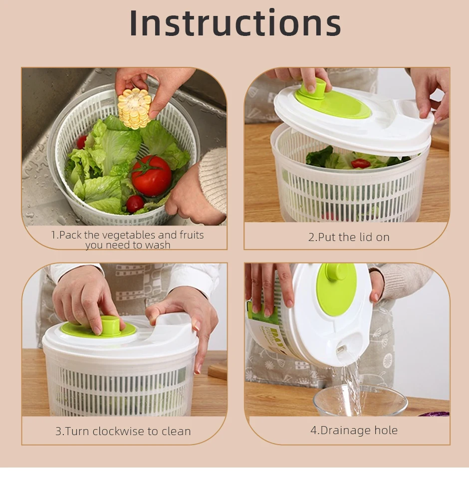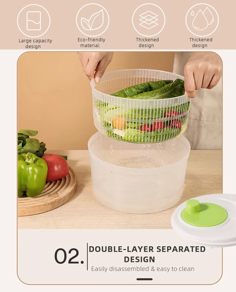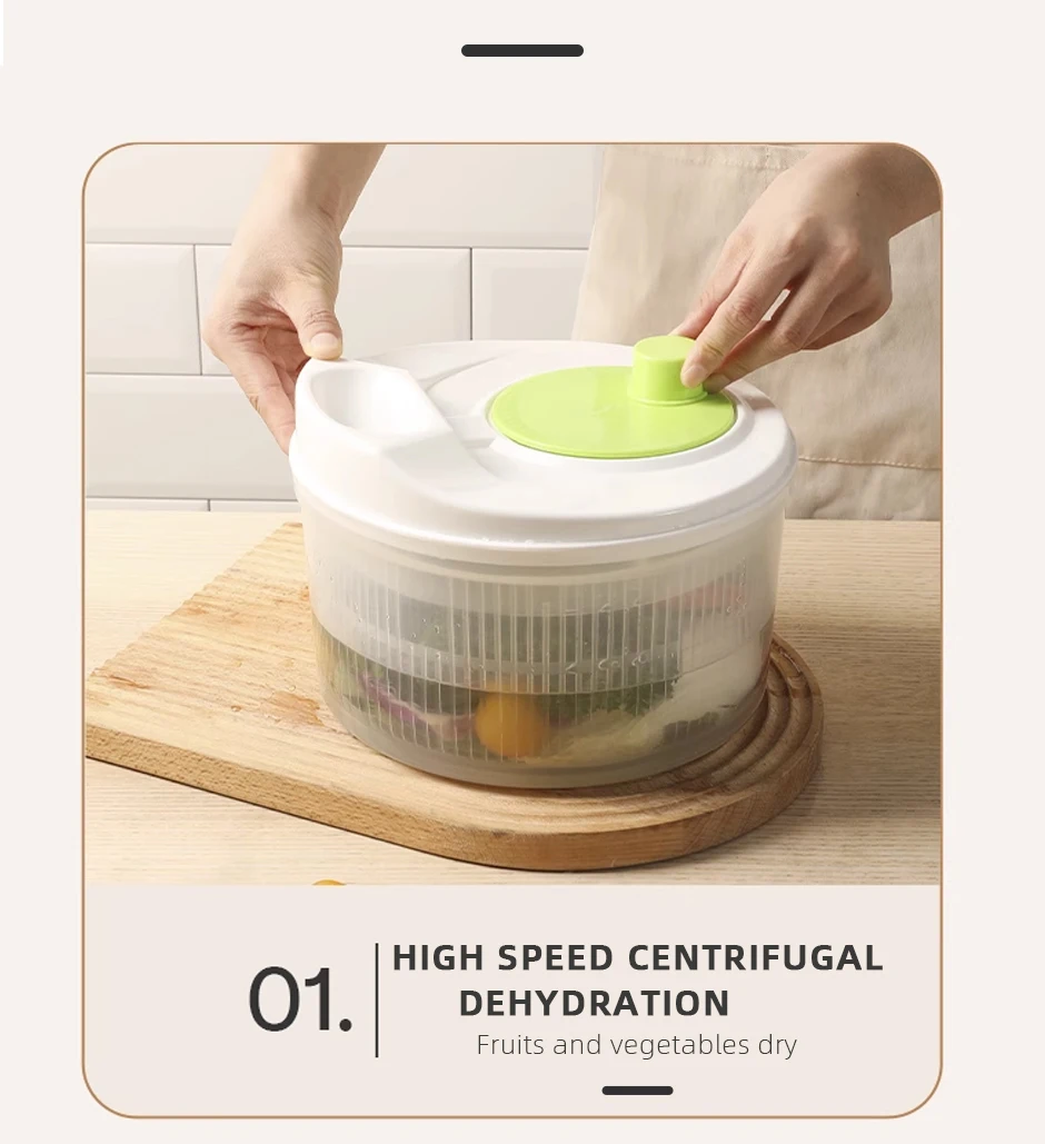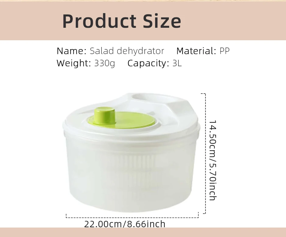 • Efficient Salad Spinner :This salad spinner is a time-saving tool, designed to wash, spin, and dry your salad greens efficiently.