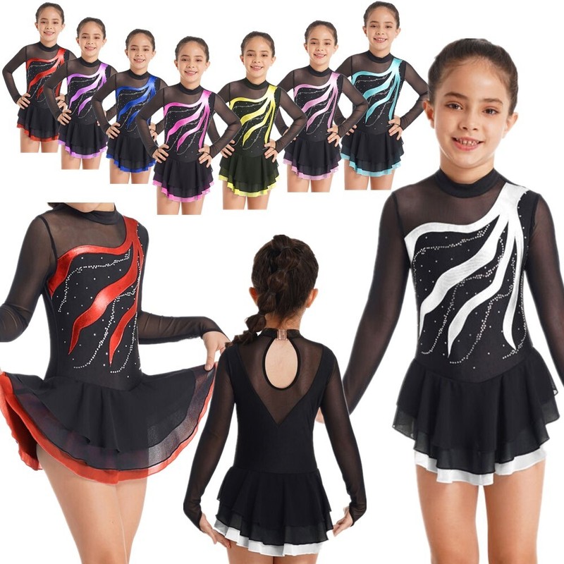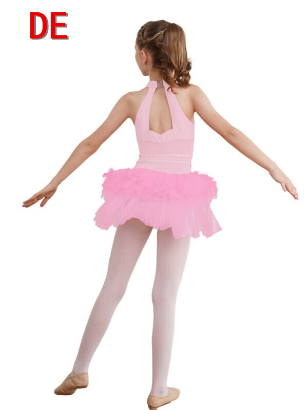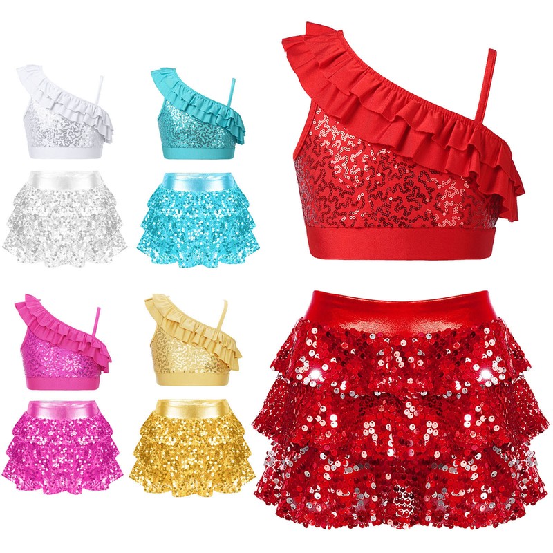 DE iEFiEL Mädchen Tanzkleid Latein Pailletten Crop Tops mit Tutu Rock Jazz Dance