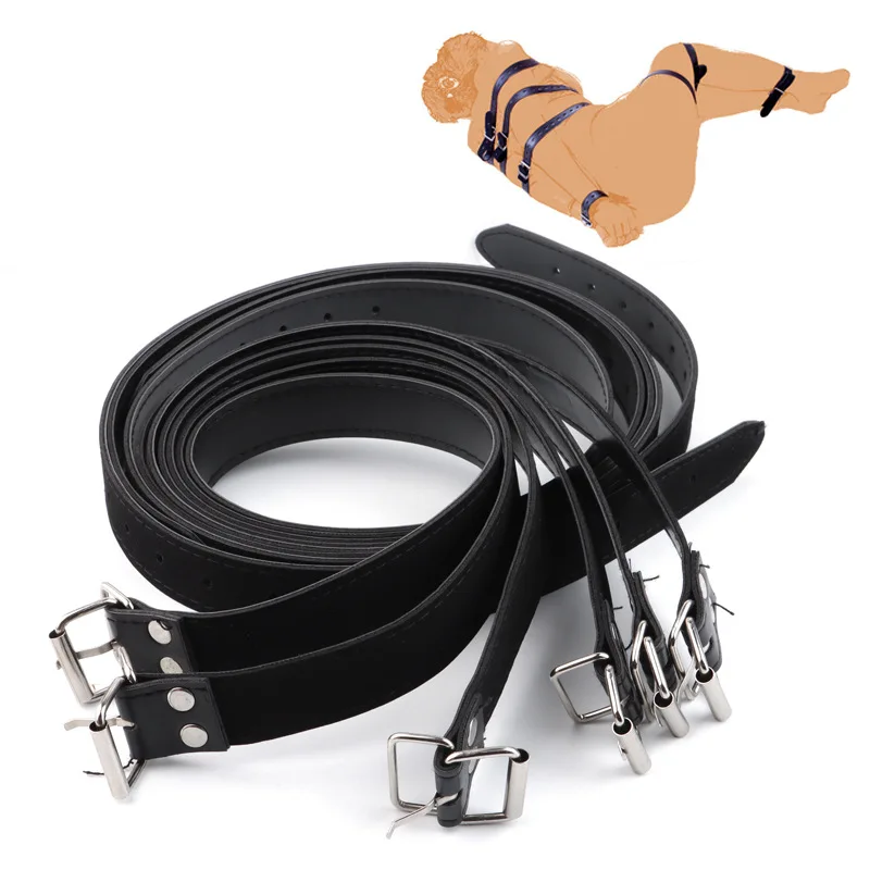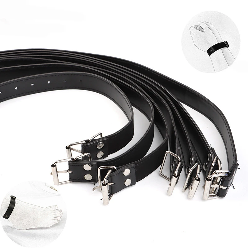 7Pcs Faux Leather Harness Body Bondage Belt Hand Leg Restraints BDSM