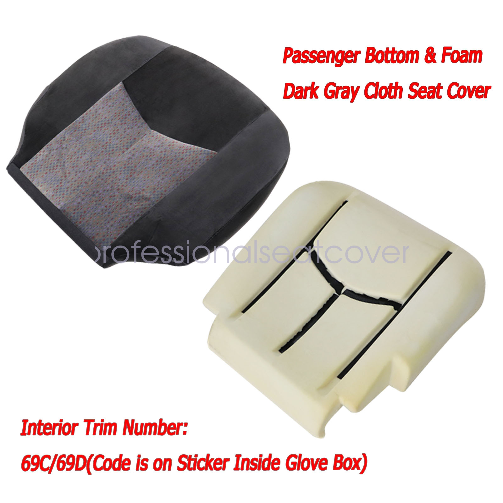 1* Bottom Seat Cover & 1* Foam Cushion (Front Passenger Side)