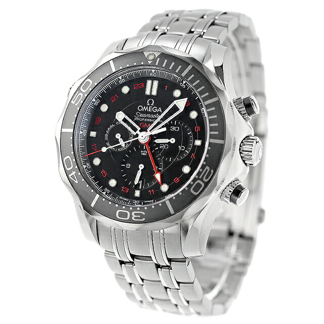 Omega is a luxury watch brand founded in Switzerland in 1848 by Louis Blanc. We adopted the word ``Omega'' (meaning achievement and perfection) from the pocket watch movement introduced in 1894 as our official company name. The Seamaster collection embodies Omega's diving watch heritage and adventurous pioneering spirit. It features a matte black dial with a 30-minute counter, a 12-hour counter, and a small seconds dial. The dial is equipped with a red 24-hour scale to match the red GMT hand. This scale can be used when measuring elapsed time in a second time zone. It is also equipped with a Co-Axial function that reduces the frequency of overhauls and boasts high accuracy by minimizing wear on parts and increasing durability.