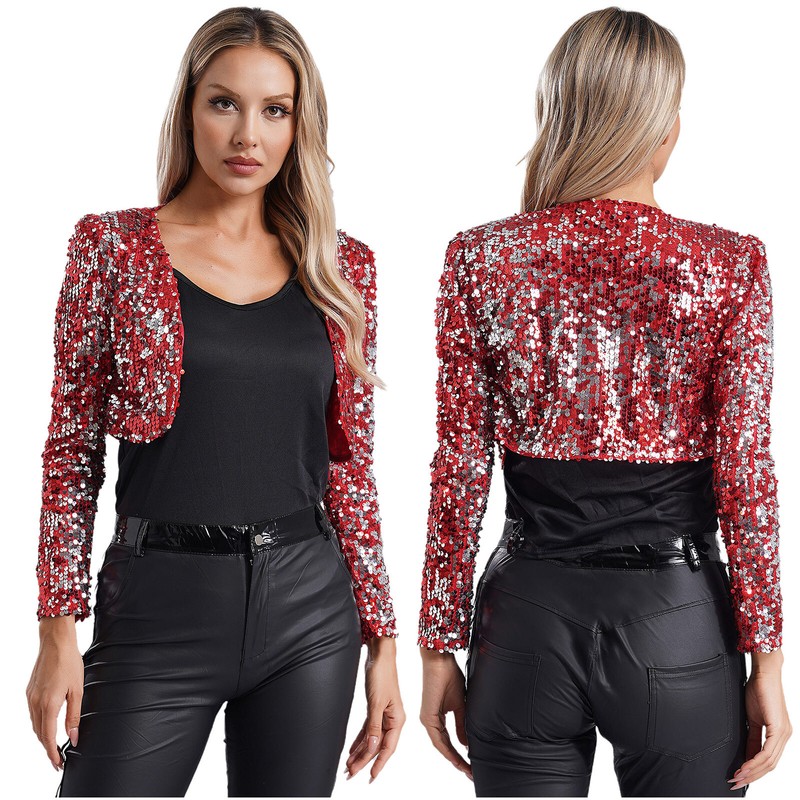 All over with glitter sequins, you will be dazzling and stunning in the crowd. Hidden shoulder pad shapes broad and perfect shoulder lines.