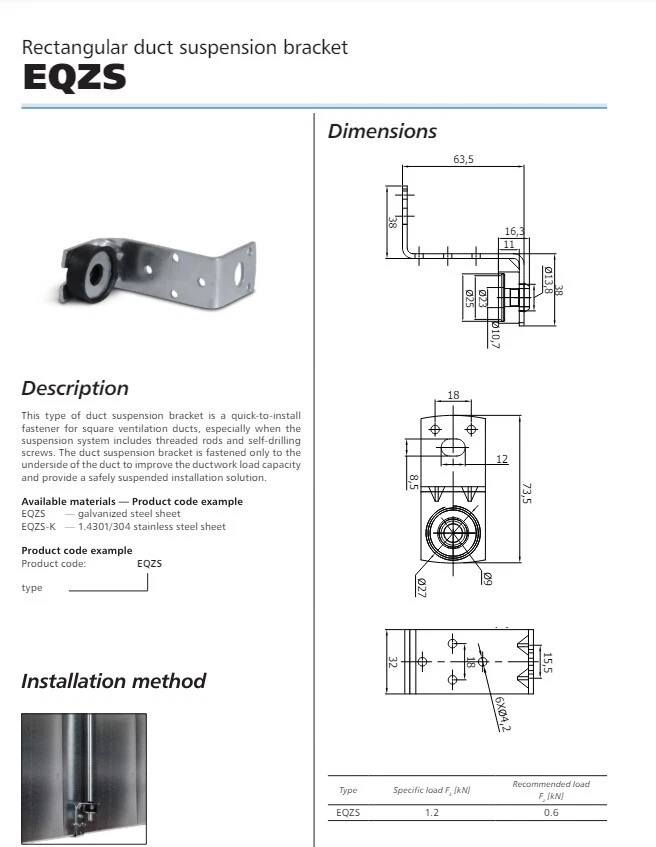 Don't settle for inferior solutions when it comes to your HVAC installations. Invest in the best with our premium EQZS brackets and experience the difference in performance and reliability. Transform your projects into showcases of precision engineering and superior quality. Order now and take the first step towards superior ventilation and climate control solutions!