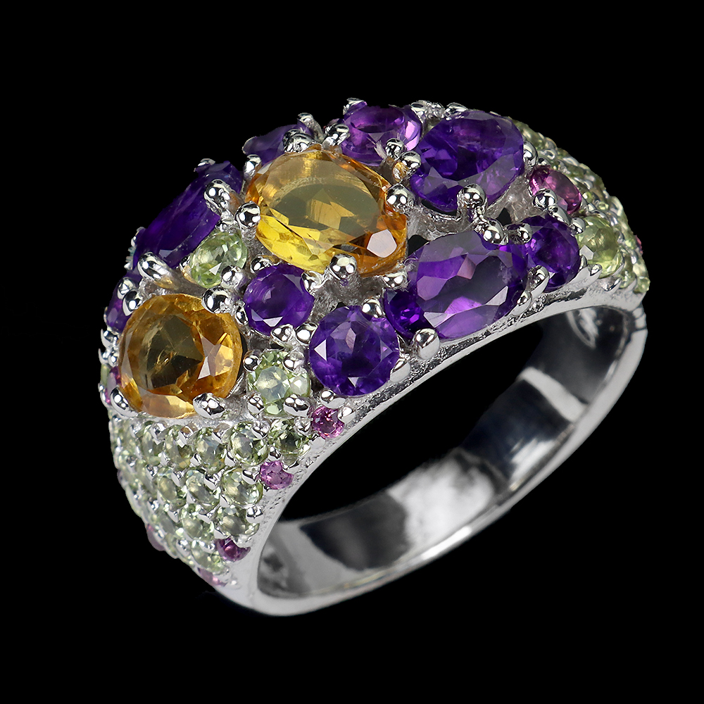 925 Sterling Silver Ring Citrine Amethyst Peridot Natural Gemstone Jewelry