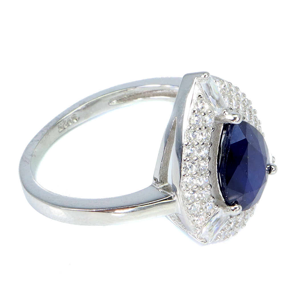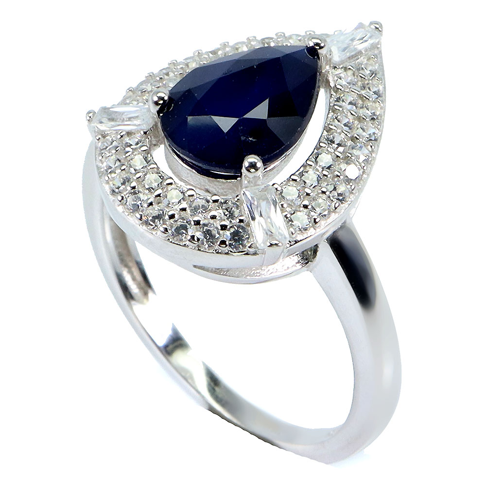 925 Sterling Silver Ring Pear Blue Sapphire 9x7mm Gemstone Jewelry Size 6.5
