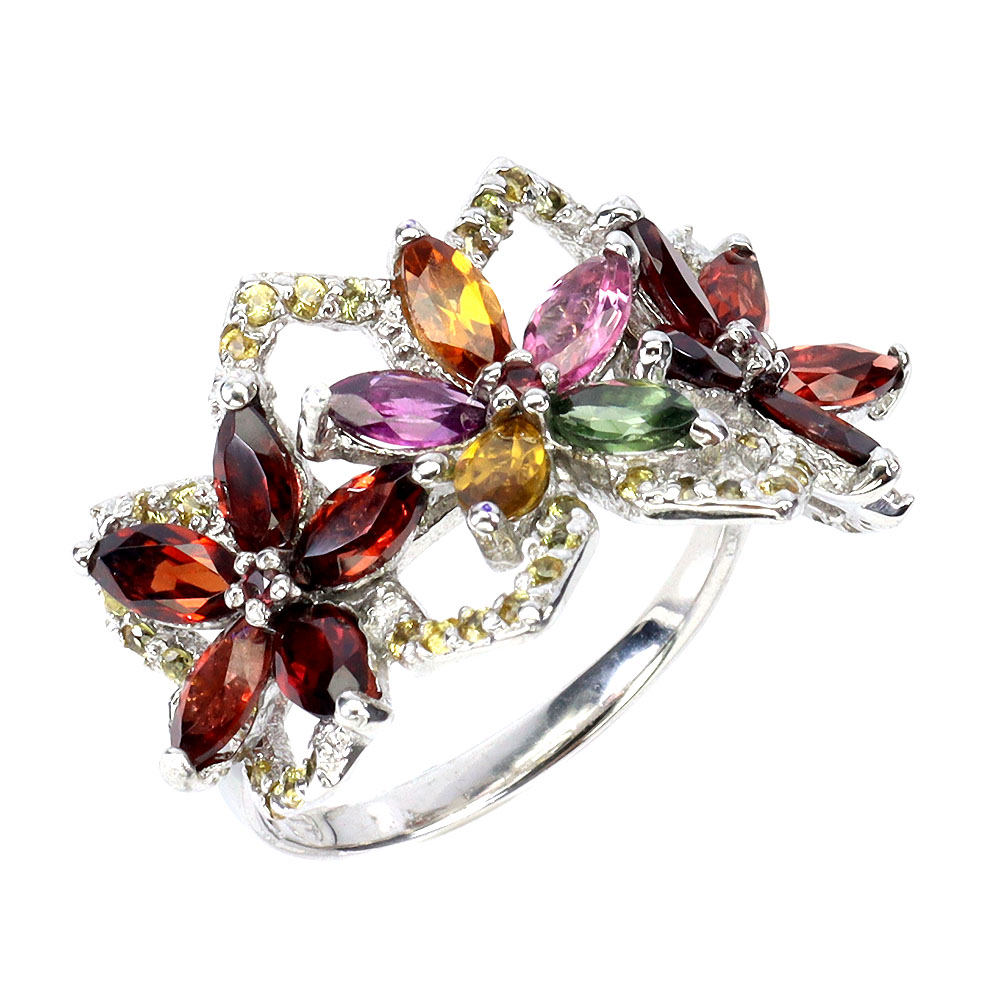 925 Sterling Silver Ring Marquise Tourmaline Sapphire Natural Gemstone Jewelry