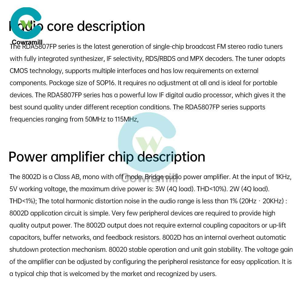 2、With radio module, with noise elimination, bass enhancement, high sensitivity, low noise, strong anti-interference ability and other advantages.