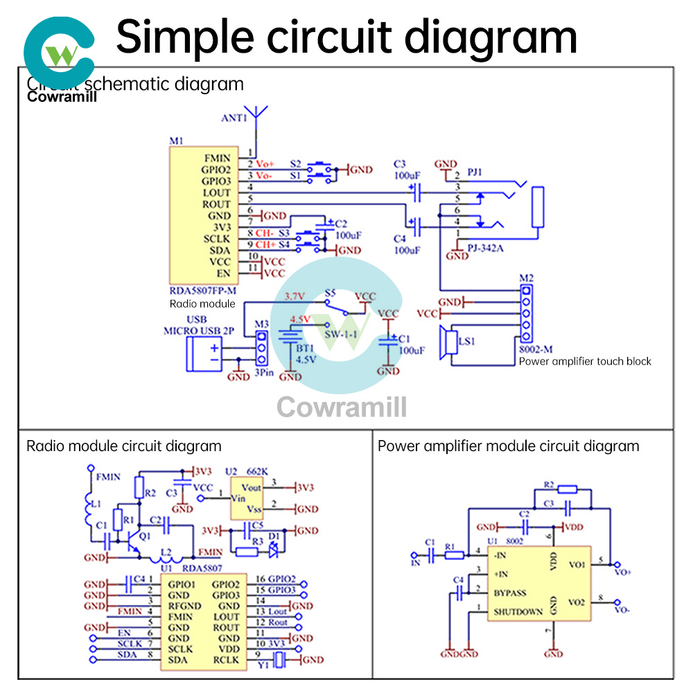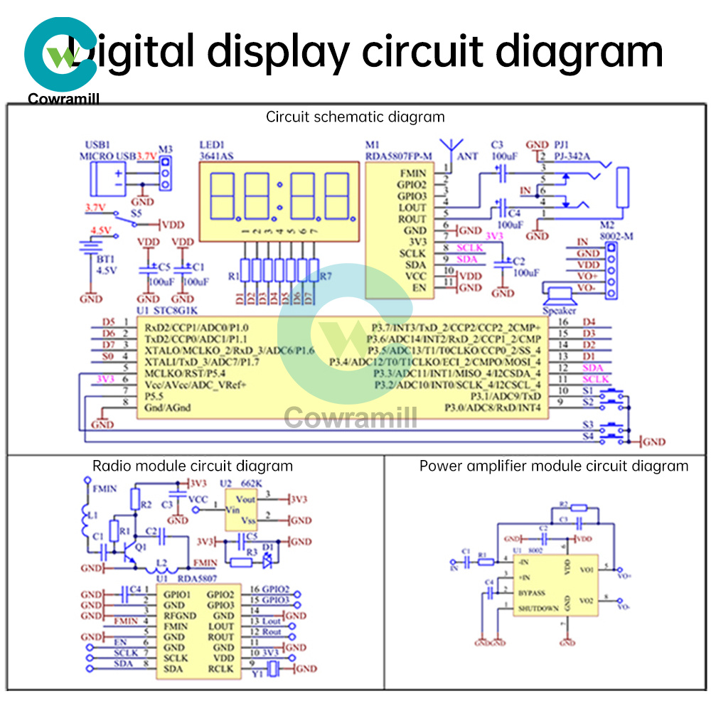 Control chip: RDA5807 8002D (STC81K17 digital display version)