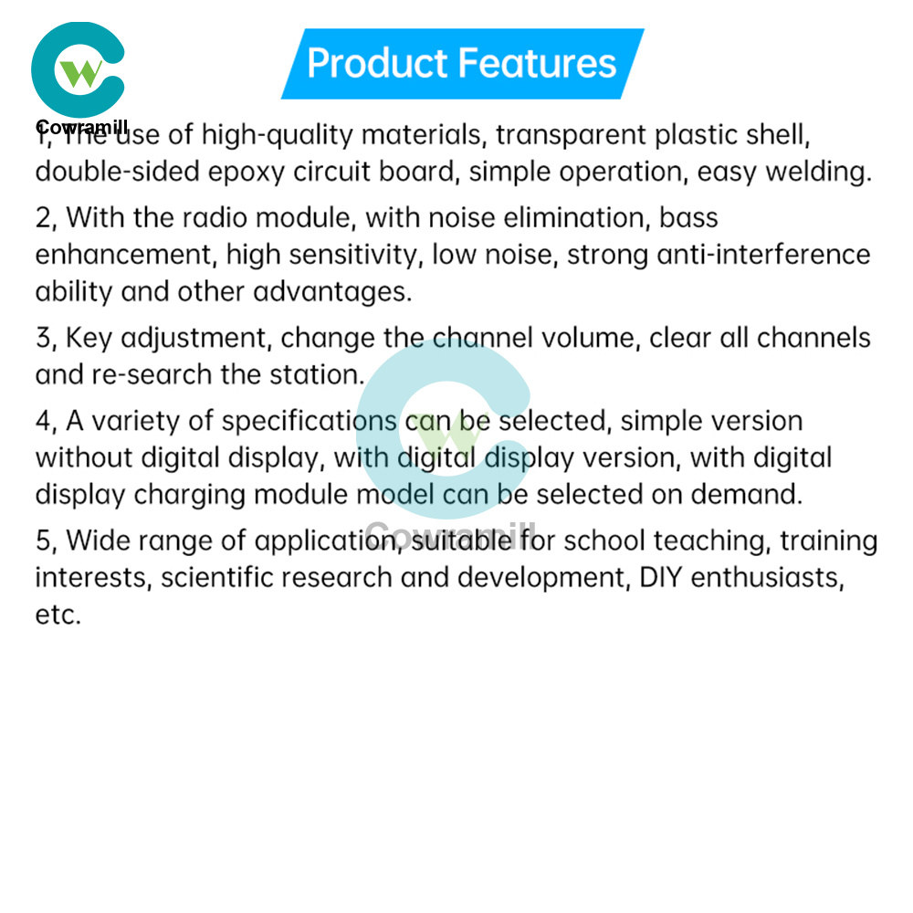 1、Using high-quality materials, transparent plastic shell, double-sided epoxy circuit board, simple operation, easy welding.