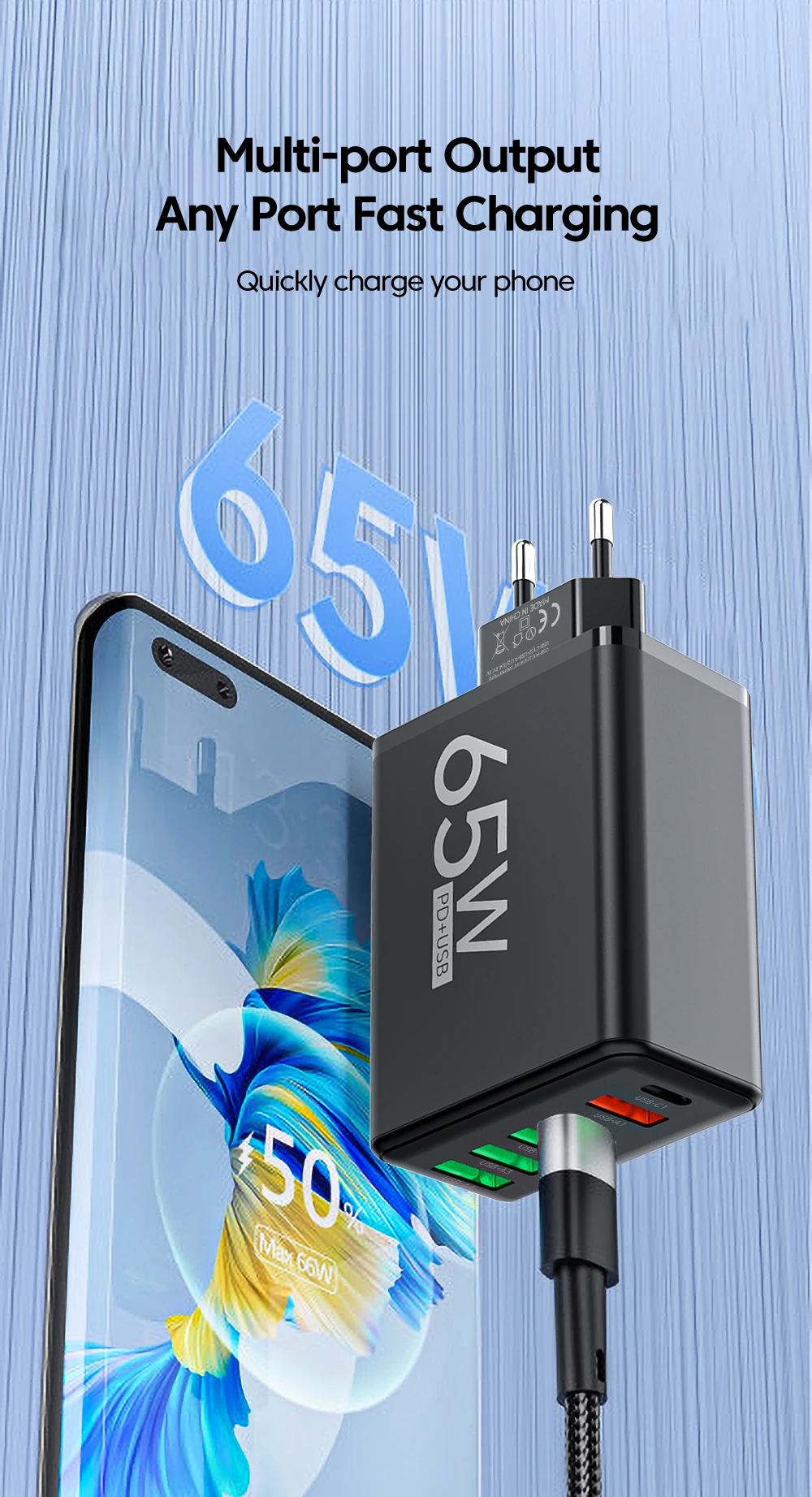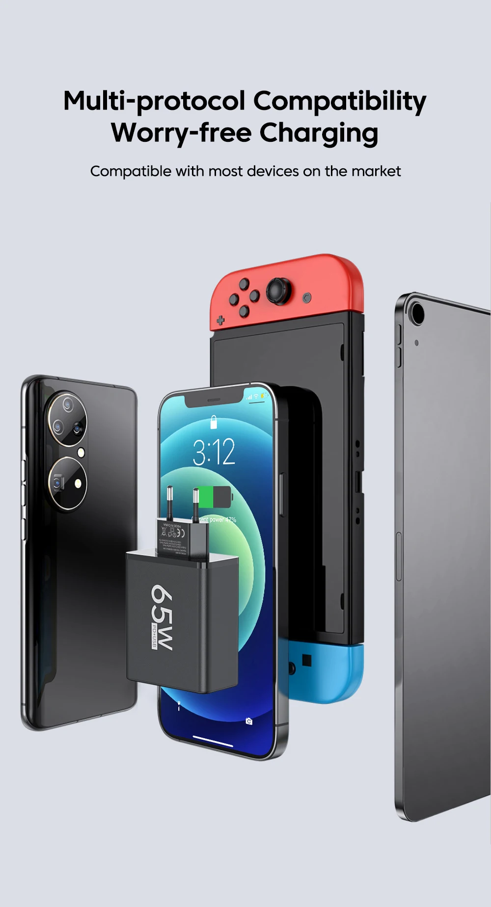 | Fast Universal Charging: | Supports quick charging protocols for devices including Apple, Samsung, Huawei, and Xiaomi, ensuring your device charges up to 50% in just 30 minutes. |