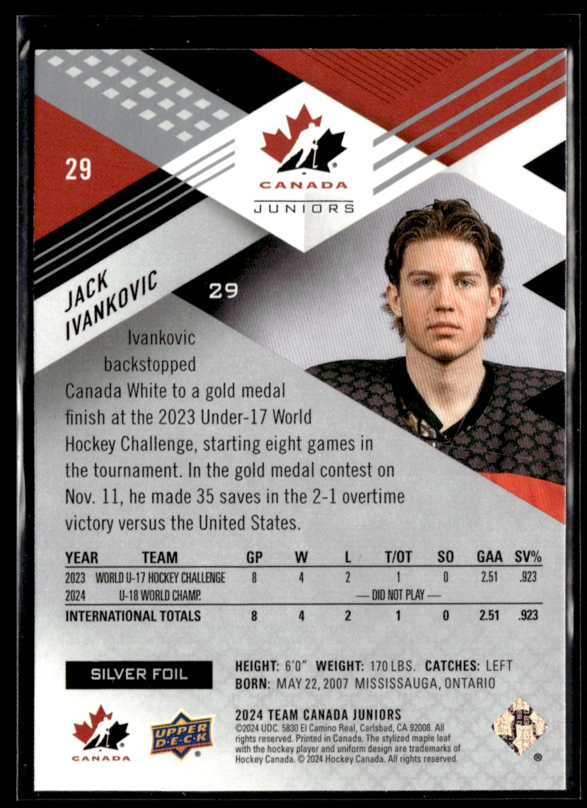 | 2024-25 UD Team Canada Juniors Silver Foil Jack Ivankovic #29 |