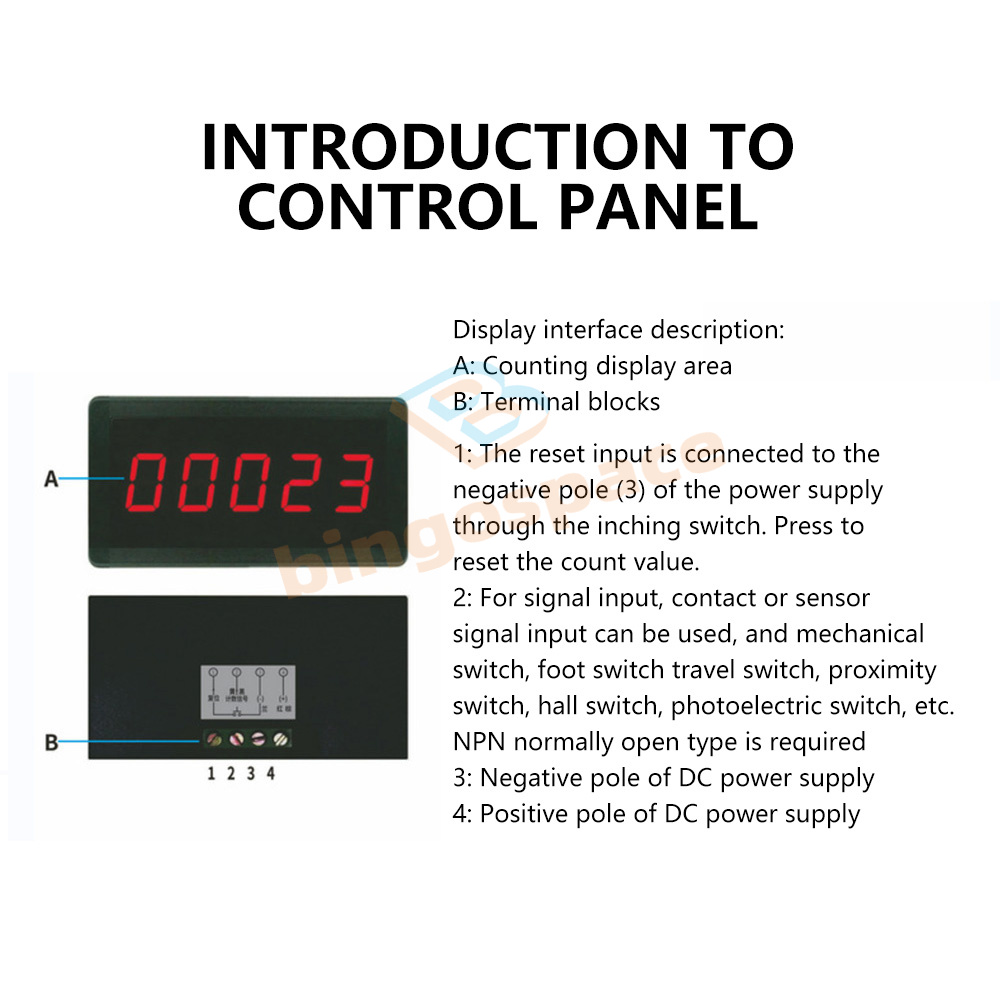 3. Contact input should be reliable, if the contact jump back to cause more counts, please connect 2.2UF capacitors in parallel at both ends of the contact, to eliminate