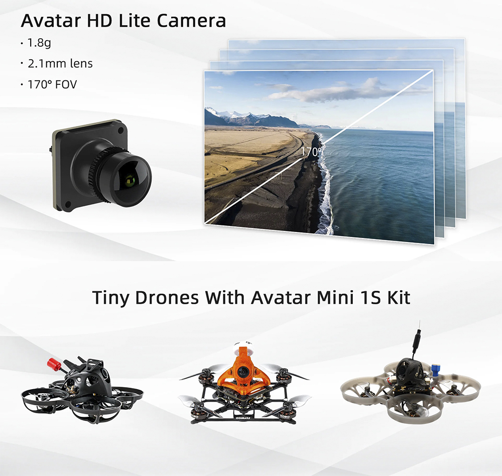 Brand new camera: Avatar HD lite camera weighs only 1.8g, but with 2.1mm lens and 170°FOV, which can bring you a clearer, more realistic image quality.