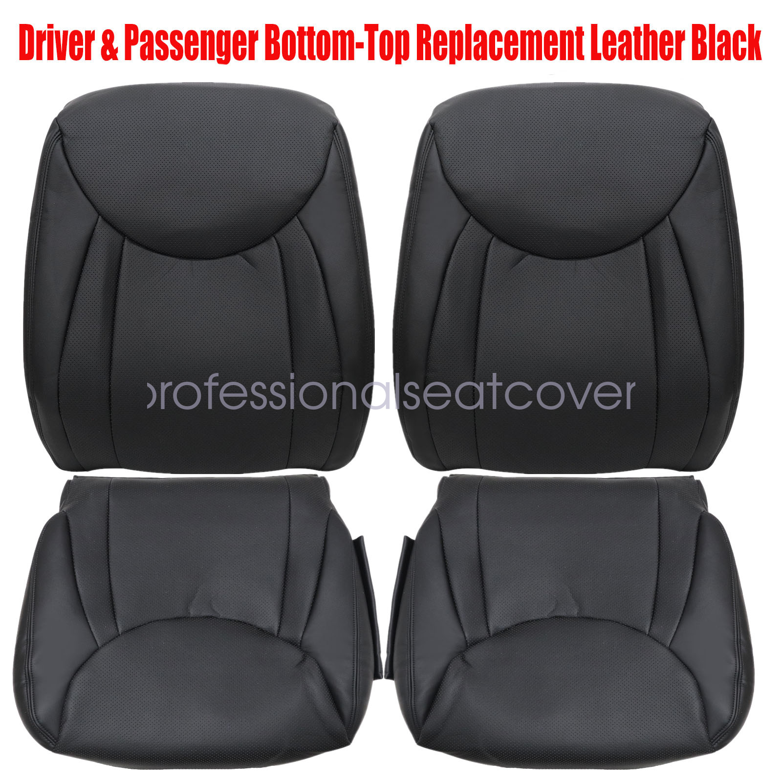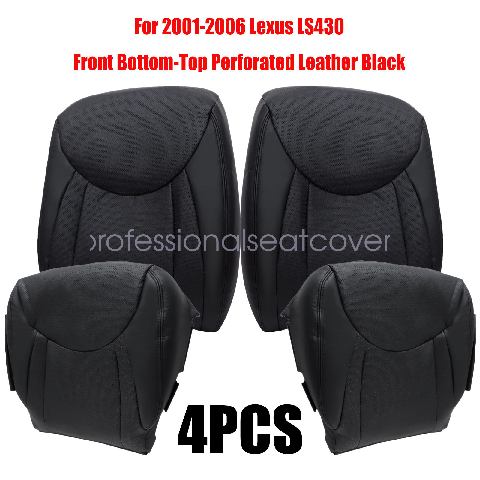 Replacement For 2001-2006 LEXUS LS430 Driver Passenger Perforated Leather Bottom-Top Seat Cover Black