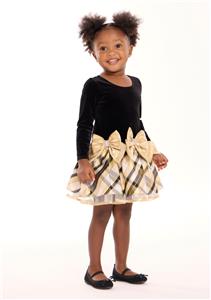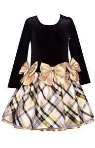 NEW Girls "BLACK & GOLD JEWEL BOWS" Velvet Holiday Christmas Dress Size 4