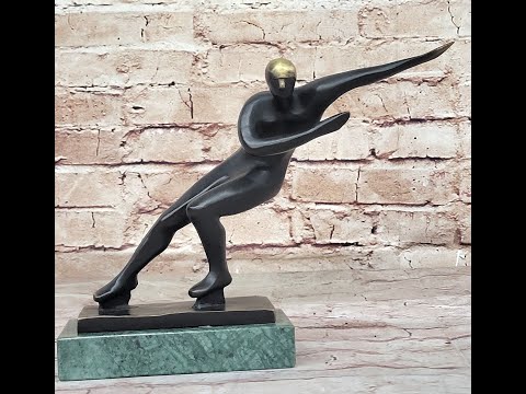 Made from 100% bronze, the sculpture boasts a dark brown patina that enhances the beauty and depth of the skater's form. Nick's signature adds a touch of authenticity to this exquisite piece. The "Lost Wax Method" was employed in the casting process, ensuring that the sculpture captures the intricacies of the artist's original work. Mounted on a green marble base, the composition exudes elegance and sophistication, making it an ideal addition to any art collection or space.