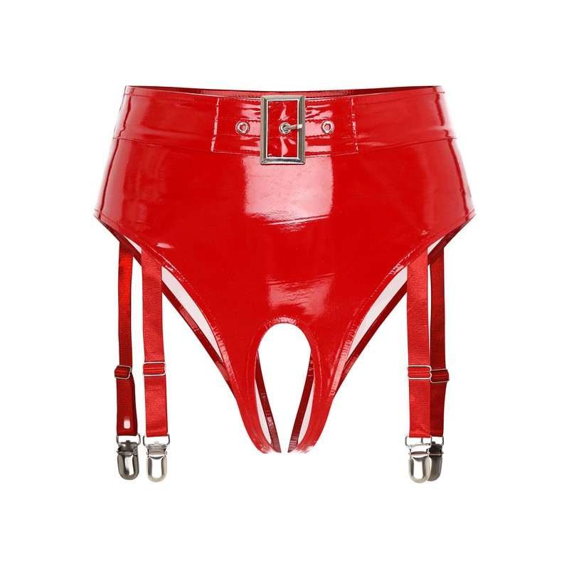 Decorated with metal buckle on front waist, adds metal elements. Patent leather has glossy and wet look, highlighting your charms and body.
