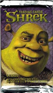 Up for sale is this trading card pack of the 2001 Dart Shrek (Movie) card series. There are six cards and randomly inserted animation cel and stand-up cards in each pack. This was produced by Dart, Inc. The pack is in near mint condition.