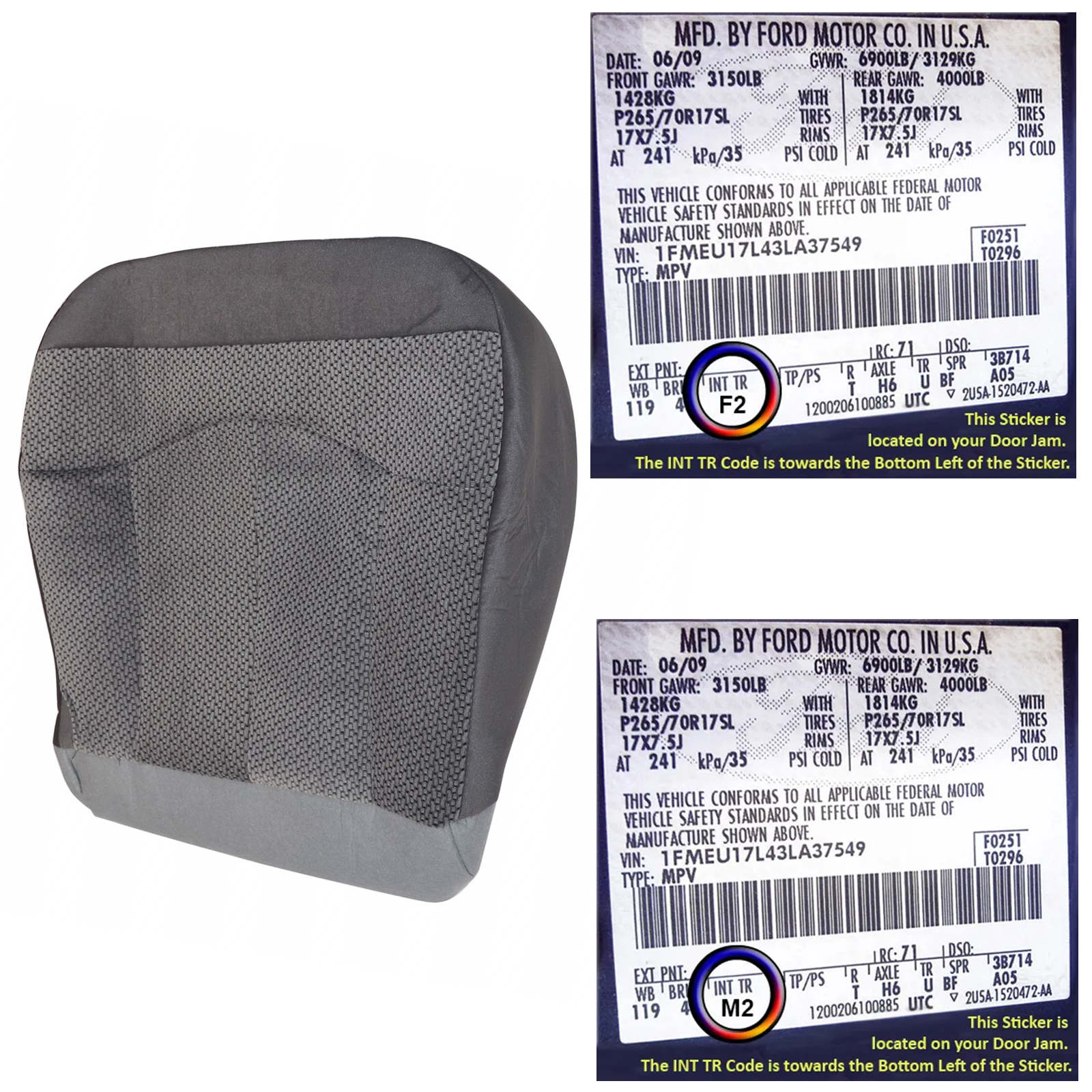 Interior Trim Code is located on the VIN number sticker: Medium Graphite "Gray"--- M2 or F2 (Code is on your Vin Number Sticker)