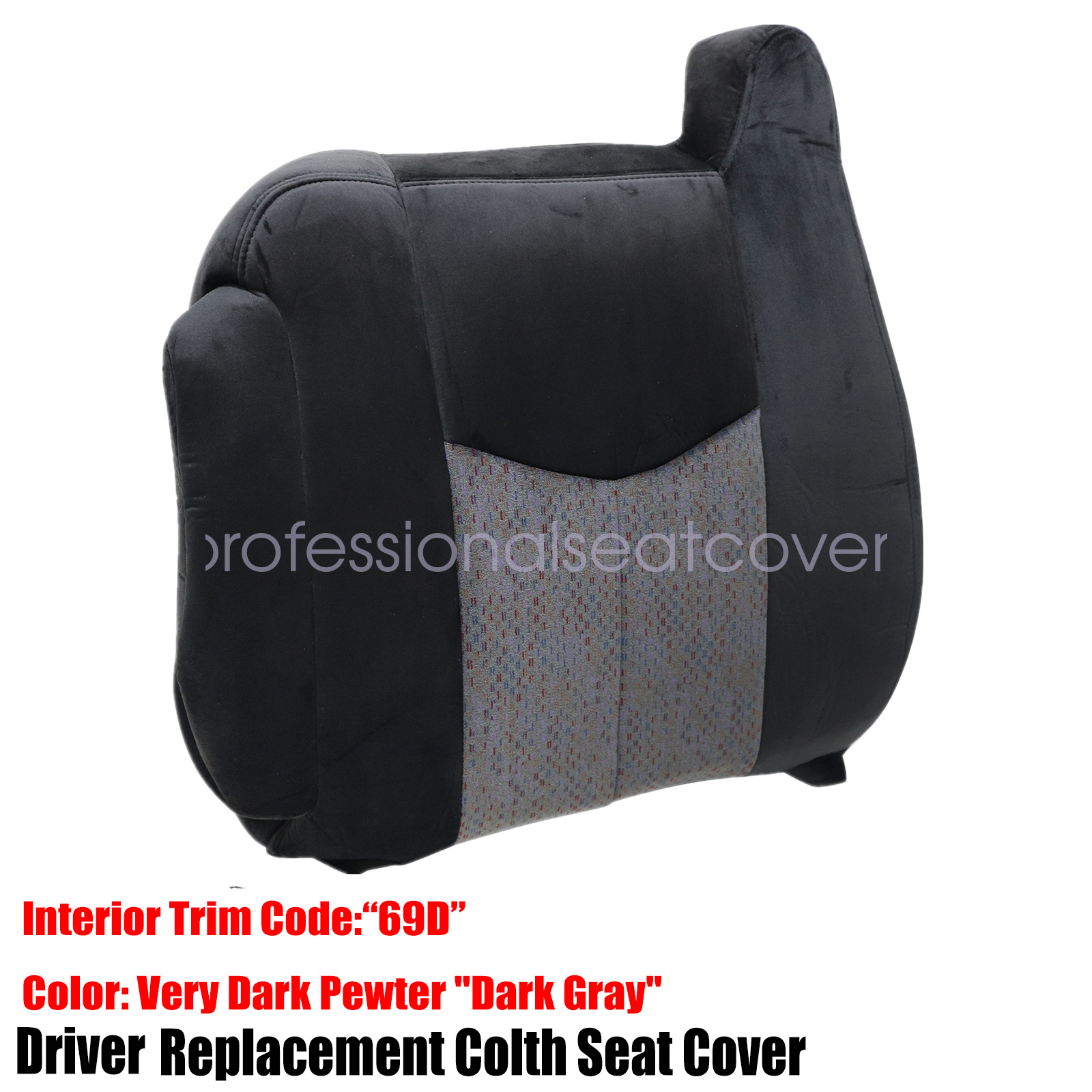 Replacement For 2003-2007 Chevy Silverado Driver Top Cloth Seat Cover Dark Gray