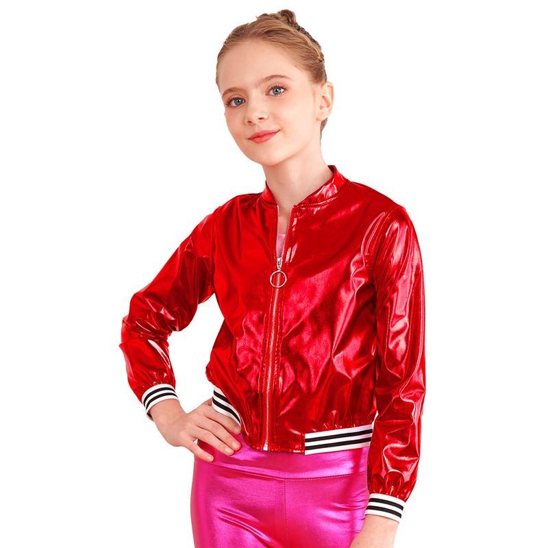 The outerwear with long sleeve and stand collar, shiny bronzing cloth outlook.
