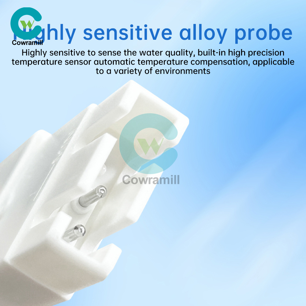 2. Highly sensitive alloy probe: highly sensitive perception of water quality, built-in high-precision temperature sensor automatic temperature compensation, applicable to a variety of environments