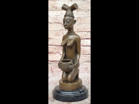 Mounted on a round black marble base for stability and elegance, this sculpture is signed by artist Milo. It’s an ideal choice for collectors or as a meaningful tribute to the universal themes of motherhood, fertility, and heritage in African culture.