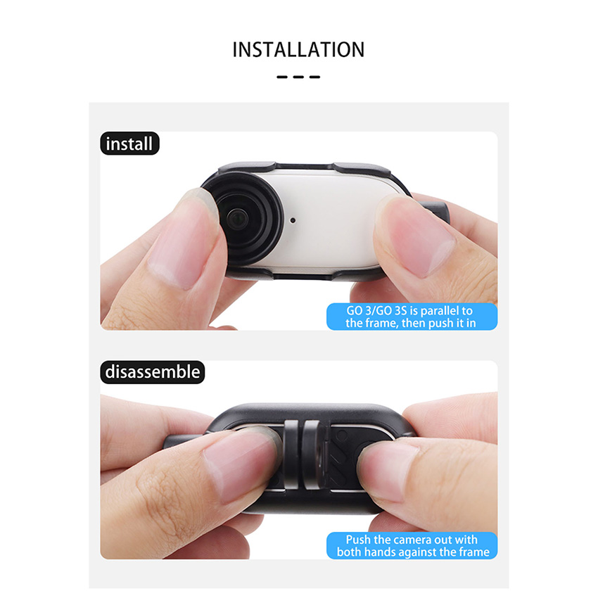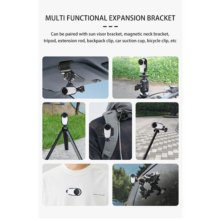 Expanded Frame Drop and Scratch Resistant Thumb Camera Adapter Base Accessories for Insta360 Go3/GO3S Features: l Suitable for Insta360 Go 3/G0 3S expansion bezel, the adapter is made of environmentally friendly plastic material, precise molding, strong anti-dislodgement, the design of the four-claw hold how to throw how to not fall off! l Can be used with sun visor bracket, magnetic neck brace, tripod extension pole, backpack clip, car suction cups, bicycle clamps, etc., dual-position expansion, horizontal and vertical shooting seconds to switch both 1/4 connector, sports camera connector, horizontal and vertical shooting can be shot, to adapt to more expanding scenarios l Foldable binaural design can fold up the binaural connector to protect the charging contacts and prevent short-circuiting when connecting to the 1/4 connector l Back hollow design does not affect the Insta360 GO 3/G0 3S body heat dissipation Specification: l Material: PC l Quantity: 1 PCS l Applicable Model: for Insta360 Go3/GO3S Package: l 1x Expanded Frame Adapter
