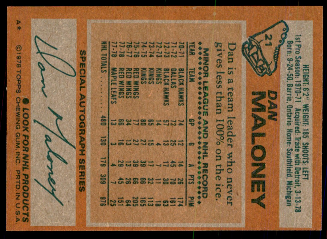 | 1978-79 Topps Hockey Cards Dan Maloney A Toronto Maple Leafs #21 |