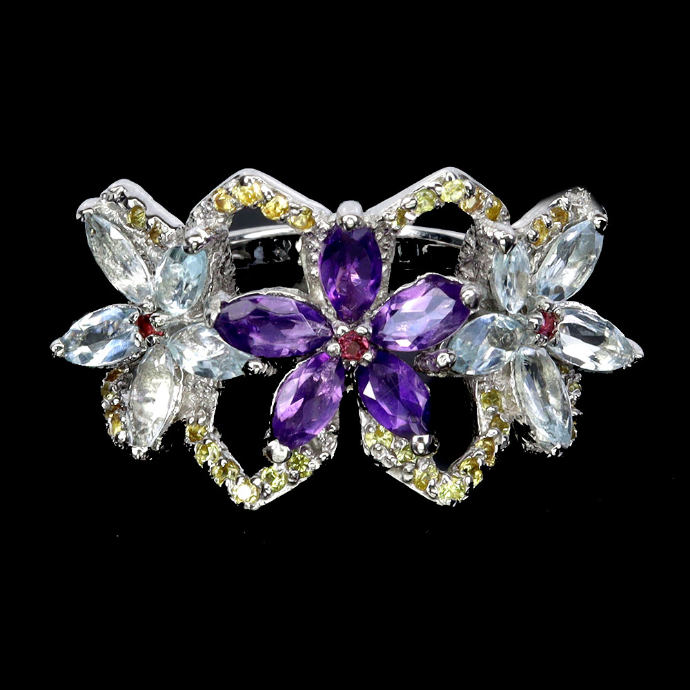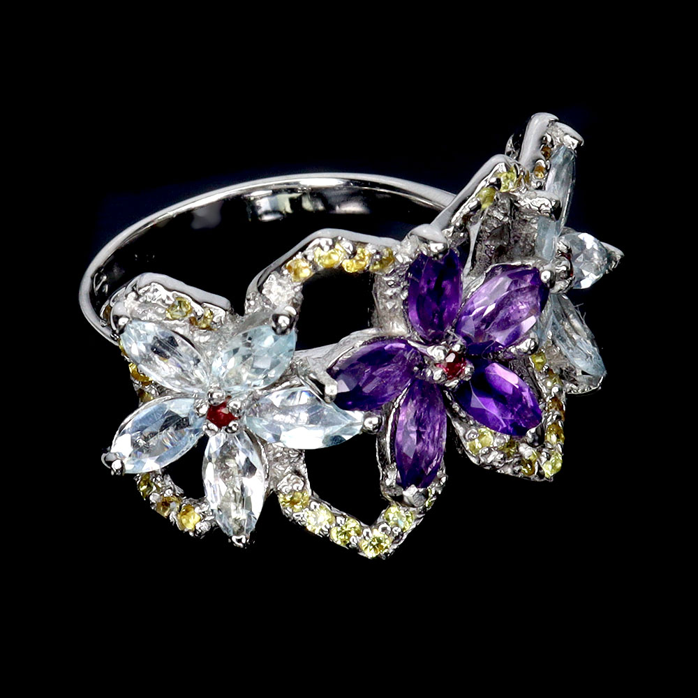 925 Sterling Silver Ring Marquise Amethyst Aquamarine Sapphire Gemstone Jewelry