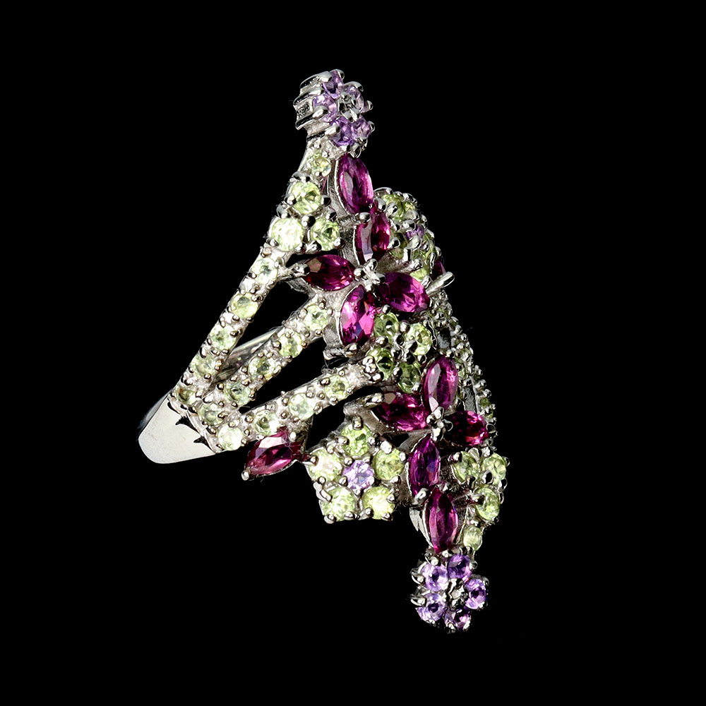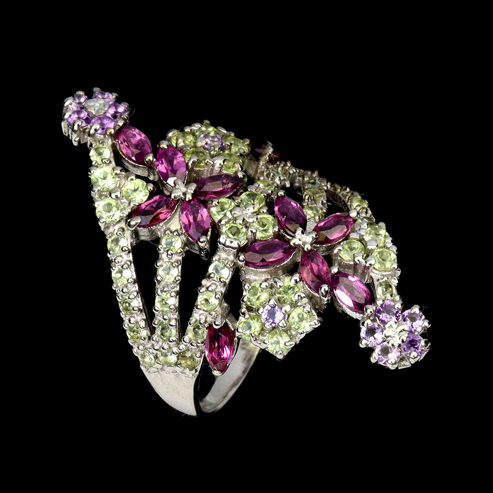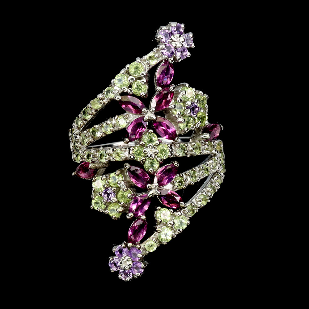925 Sterling Silver Ring Marquise Rhodolite Garnet Peridot Gemstone Jewelry