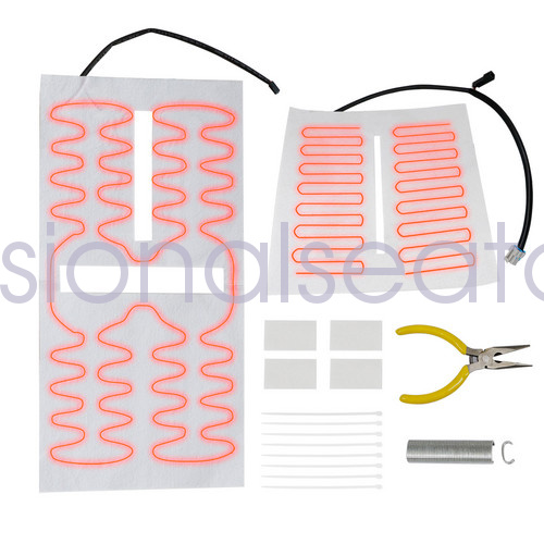 The kit is designed to install between your seat upholstery and the padding underneath.