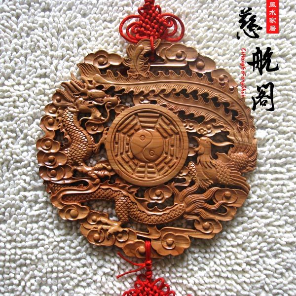 Mahogany dragon and Phoenix Bagua wood carving hanging screen and home decoration