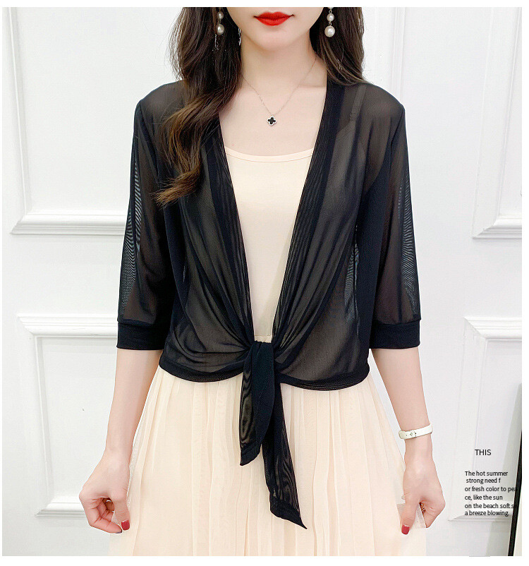 * Item:Women's 3/4 Sleeve Sheer Mesh Bolero Shrug Open Front Cardigan Tie Up Tops