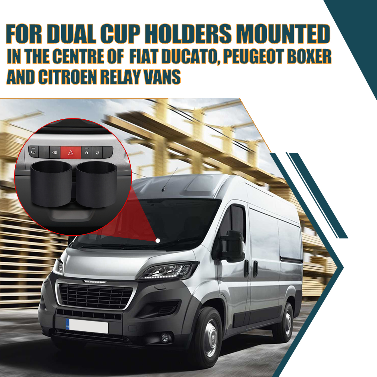 Our cup holder system is designed to fit perfectly in the center storage unit of your van or motorhome. It's made from sturdy steel and features a double cup holder that can accommodate drinks of all sizes up to 70mm in diameter, so large and small disposable coffee cups, standard soft drink cans, bottled water etc.