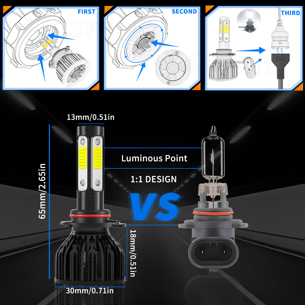【10 Minutes Installation】0.5-inch ultra-thin heat sink, fit for 99% of cars, even with a dust cover. Replace old broken bulbs by yourself can saving your precious time to repair