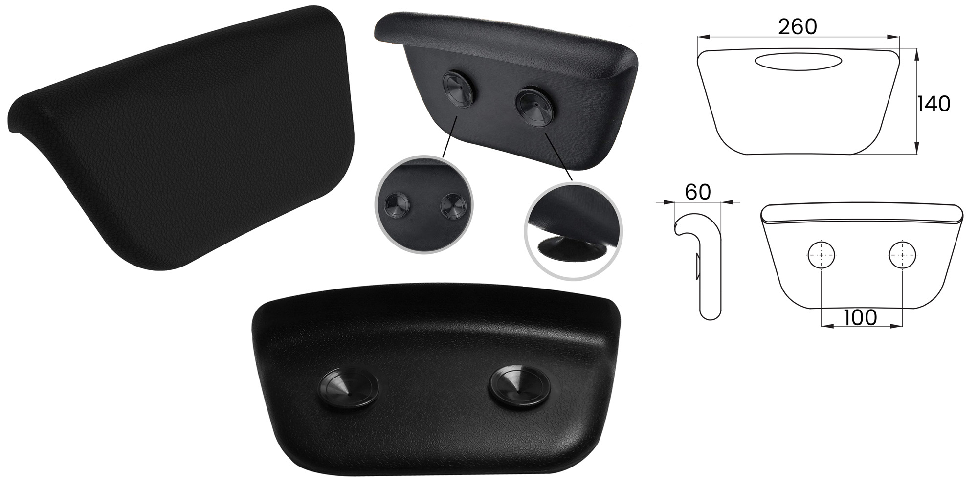 Die zeitlose schwarze Farbe passt zu jedem Badezimmerdekor und verleiht der Kopfstütze einen eleganten Look. Das wasserbeständige Material gewährleistet eine lange Lebensdauer und somit lang anhaltende Qualität.