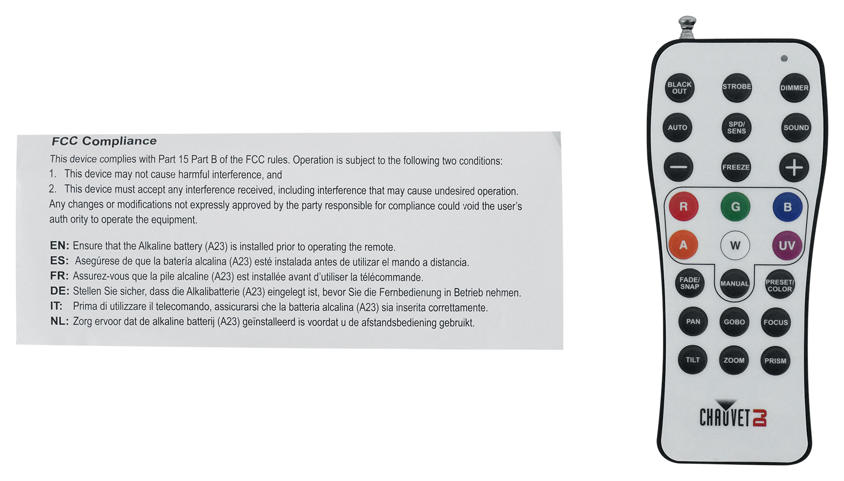 - (1) Chauvet DJ RFC RF Remote Control for RF Enabled Wash/Par Moving Head Lights