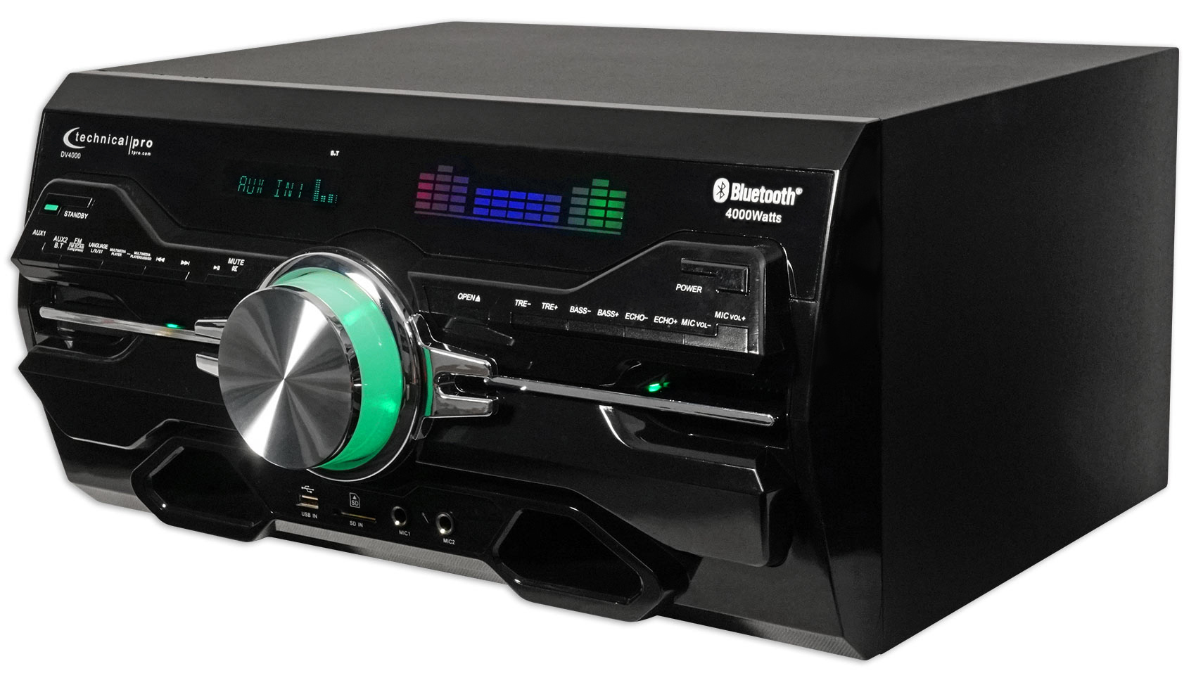 The Technical Pro DV4000 is a receiver and DVD player with Bluetooth capabilities. This professional piece of sound equipment is both stylish and rugged. Technical Pro are well known for the durability of their products. This is achieved through rigorous manufacturing quality combined with the use of tough materials. The company is also committed to innovative design, and this unit displays all of those hallmarks.