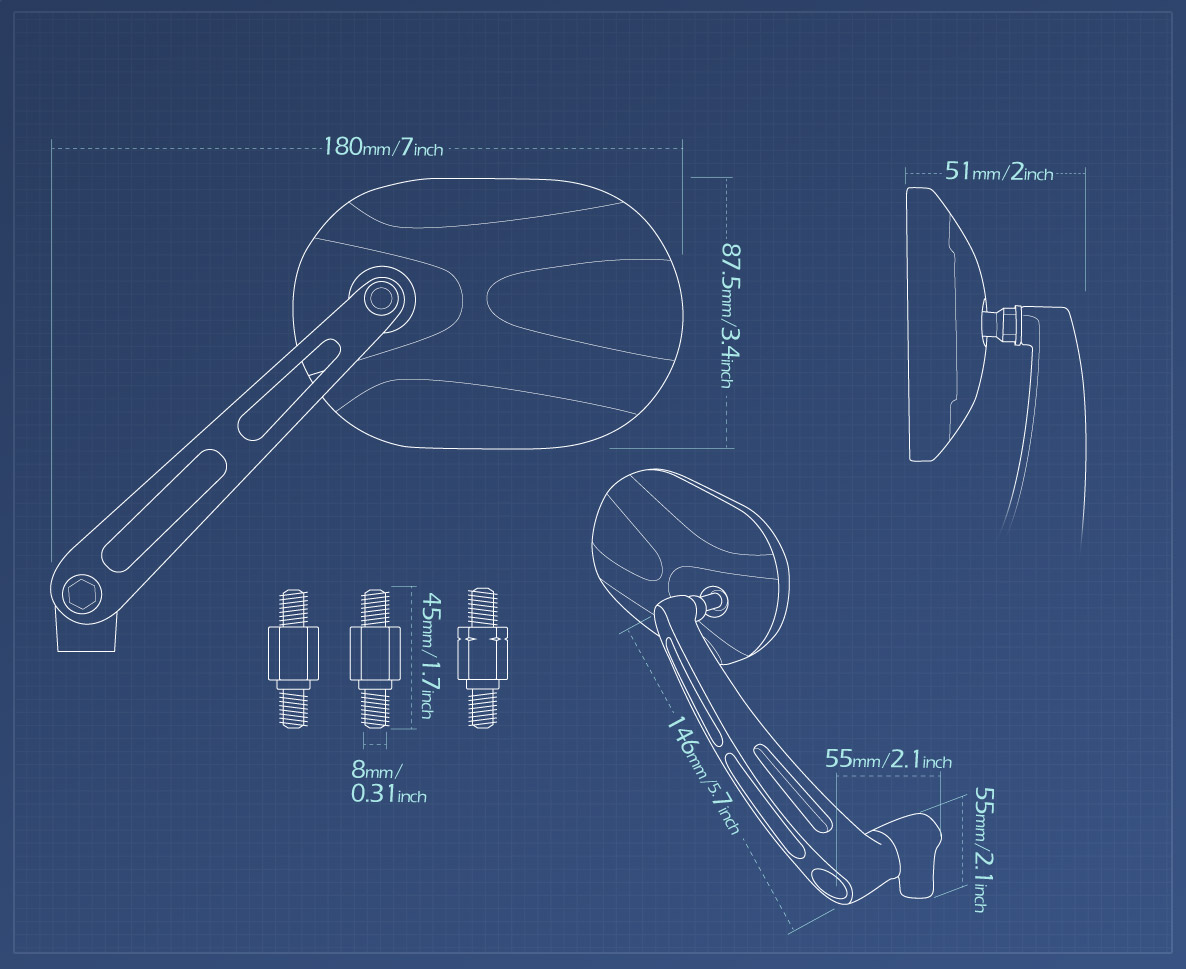 - Most big bike mirrors have 10mm standard/clockwise thread.