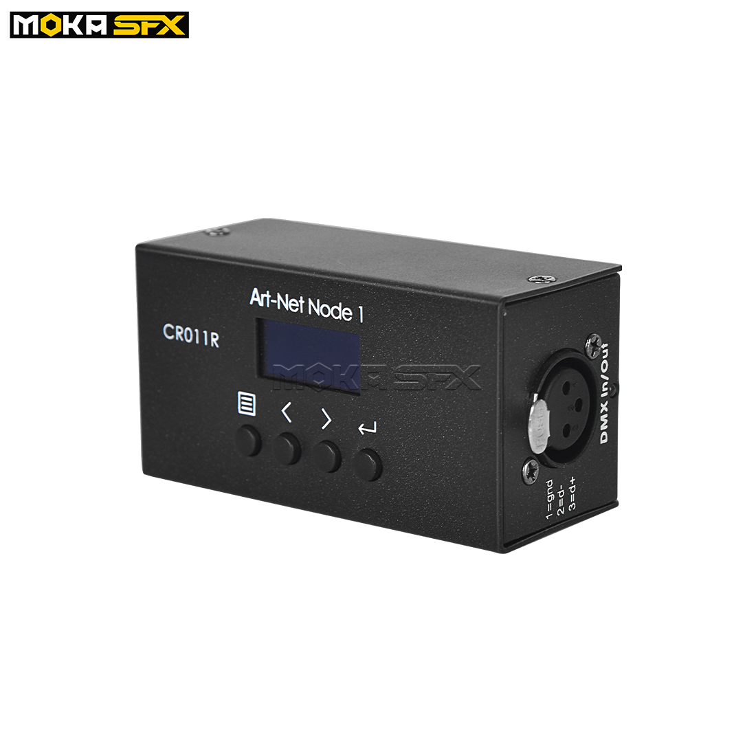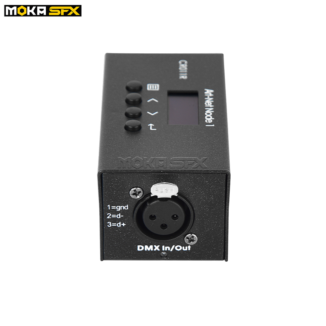 1.Support decoding standard Art-Net protocol data into standard DMX512 data output, Standard 3pin DMX port (output only)