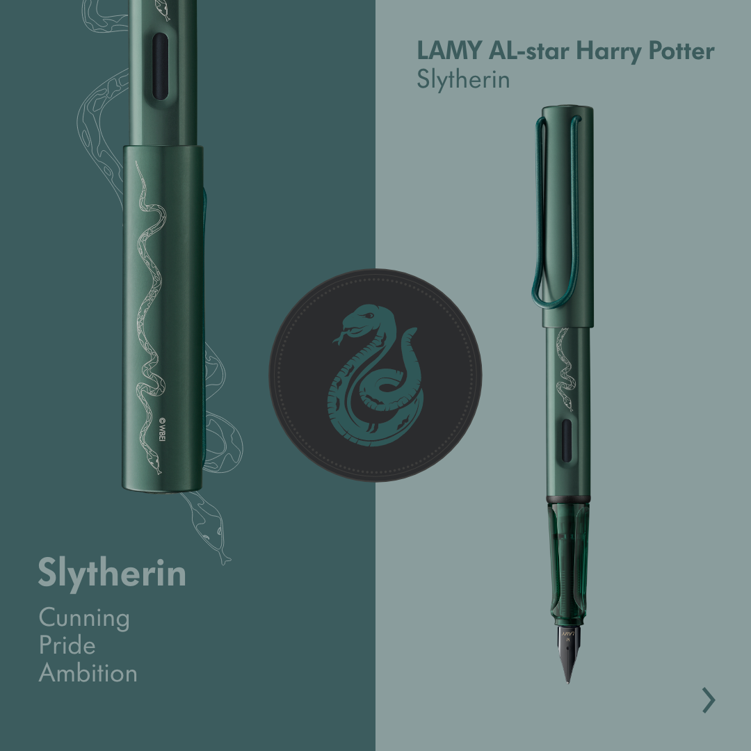 Experience the magic of writing with Lamy's first licensed collection, the Harry Potter x LAMY AL-star fountain pen series. Inspired by the iconic Hogwarts houses, each model is uniquely designed with the recognizable colors and emblems. This collection is a must-have addition to any pen collection, perfect for writing enthusiasts and creative fans alike.