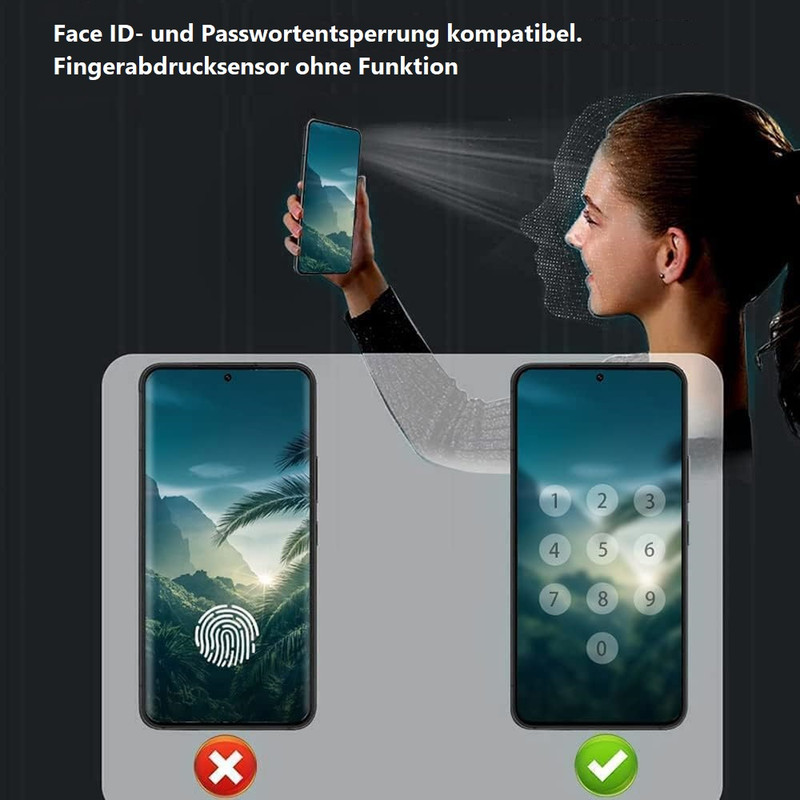 - Hinweis! Der Fingerabdrucksensor funktioniert bei verwenden der Blickschutz NICHT mehr!