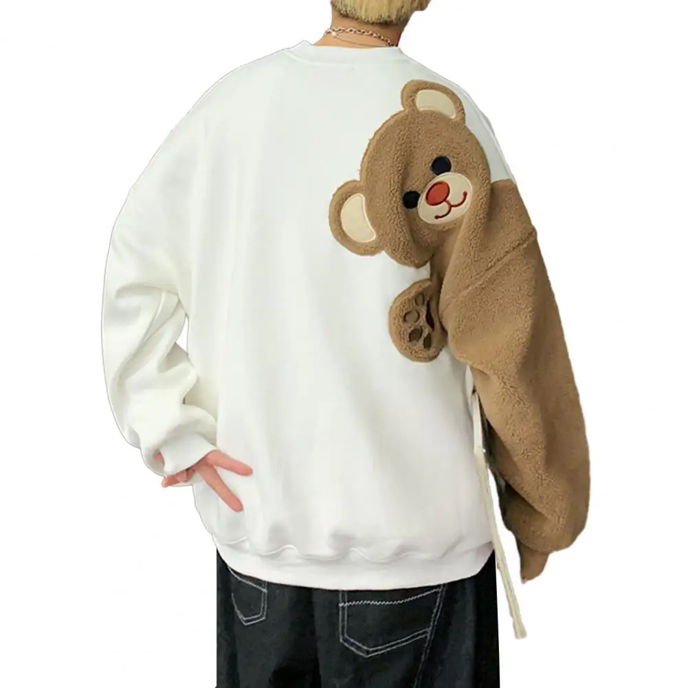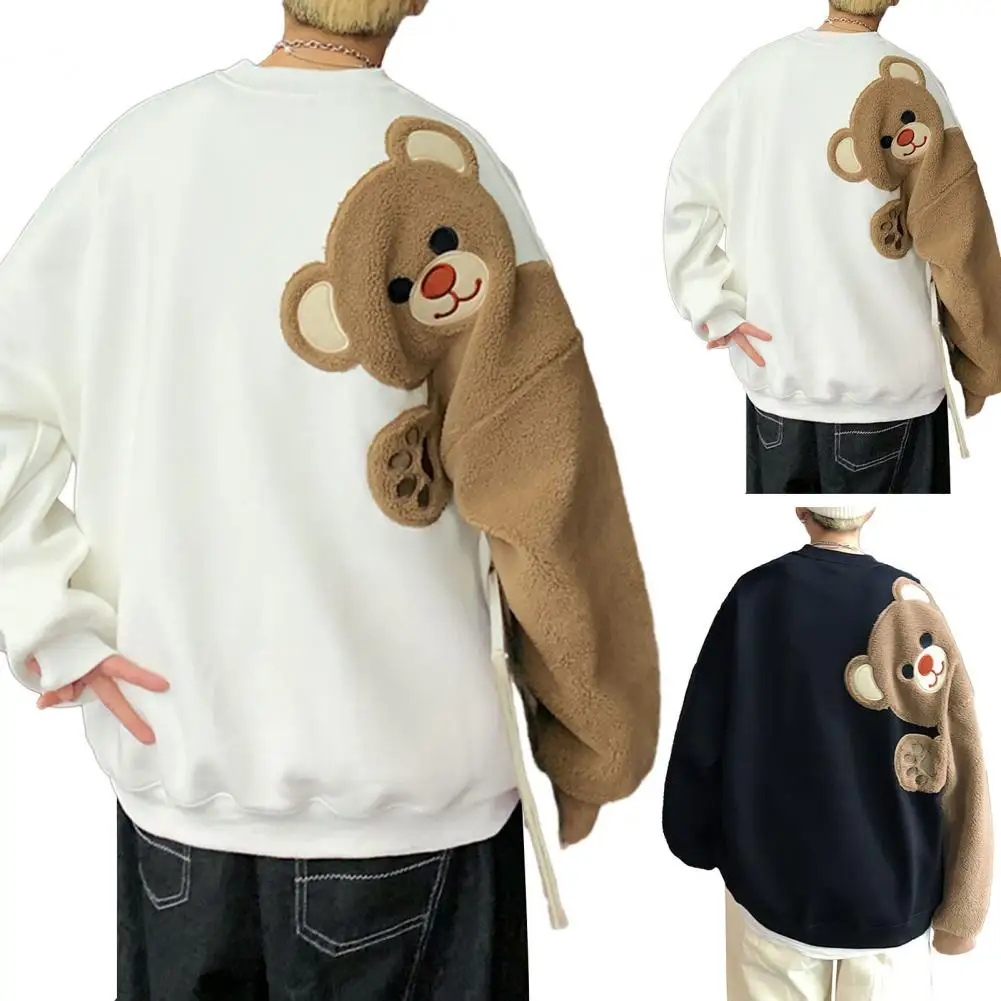 Couple Sweatshirt Fall Winter Cartoon Bear Round Collar Long Sleeves Casual Loose Oversized Soft Warm Men Women Sport Top